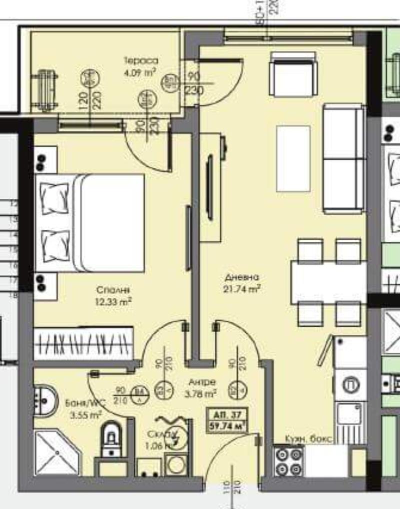 Office with a project for conversion into a two-bedroom apartment in Zornitsa district