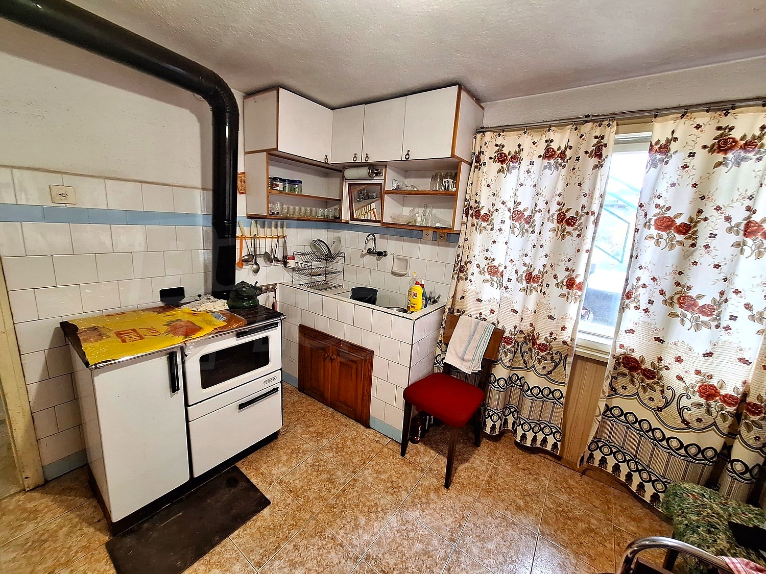 The house has two floors, the first floor is divided between a corridor, four rooms and a bathroom. External stairs lead to the second floor, which is distributed between four rooms, one of which is the kitchen. The flooring and the windows are wooden.