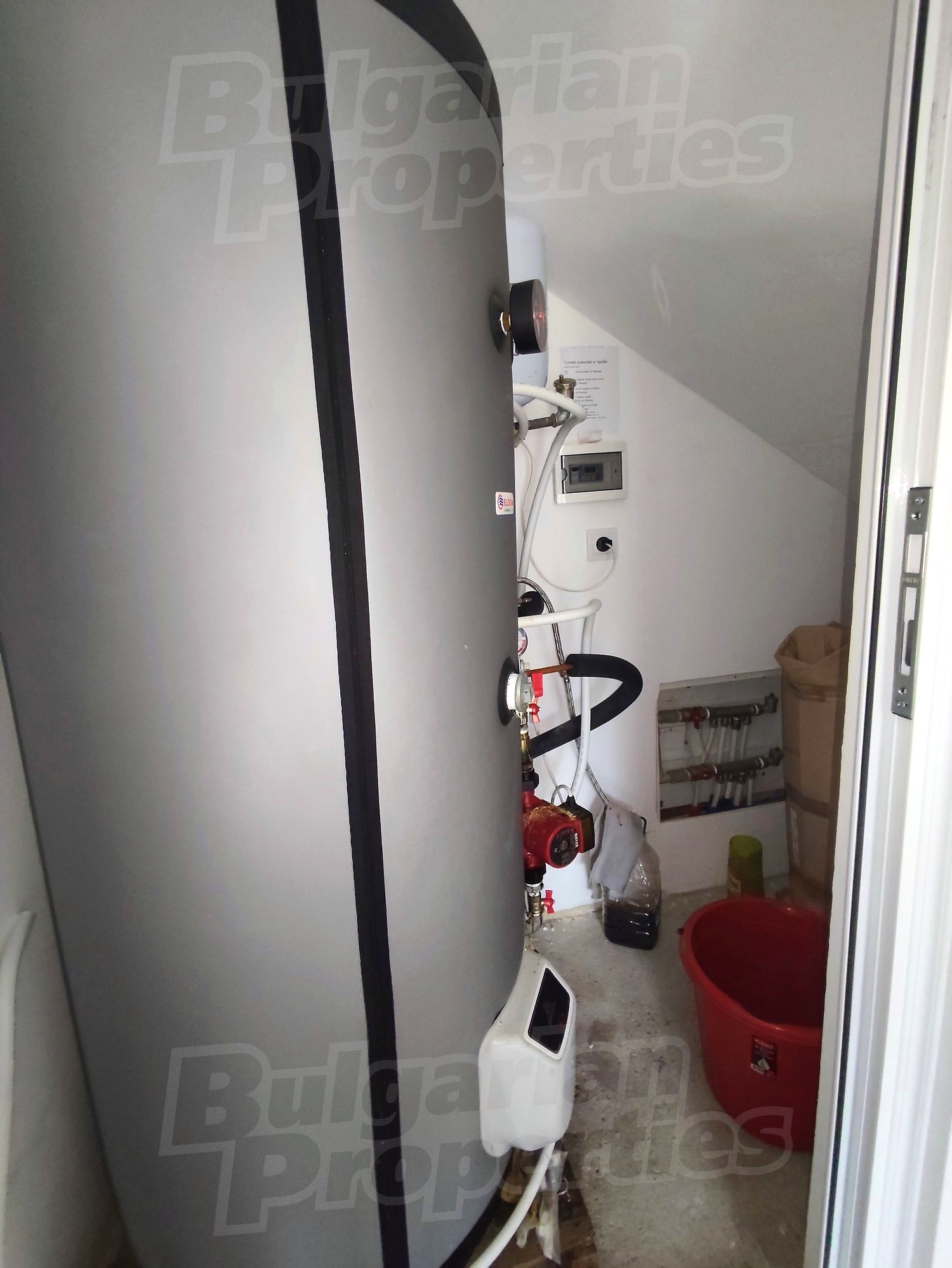 The houses are air-conditioned. The heating is solved with a boiler and radiators, and for the hot water - there are solar collectors with 200-liter boilers in each house.