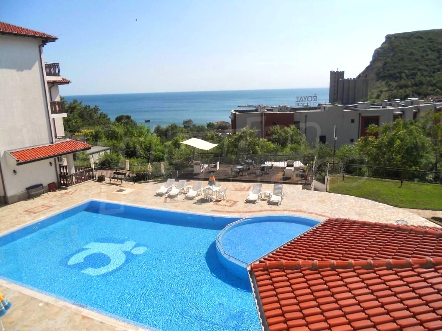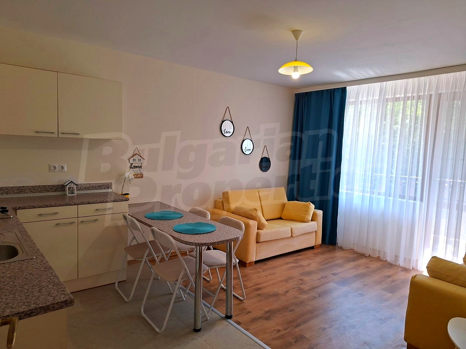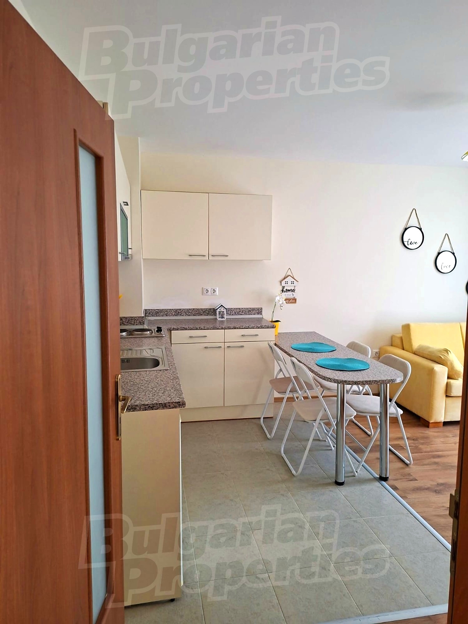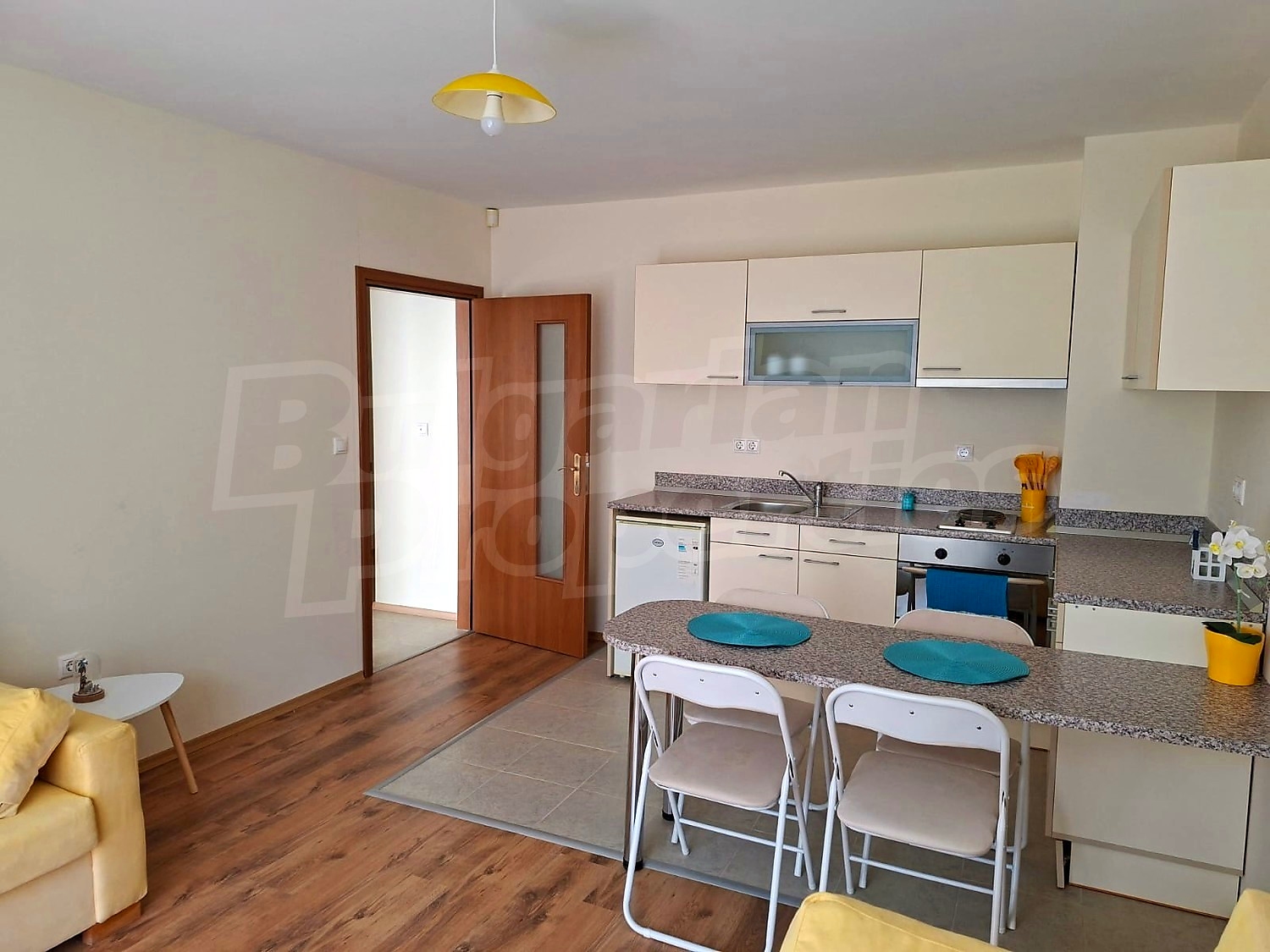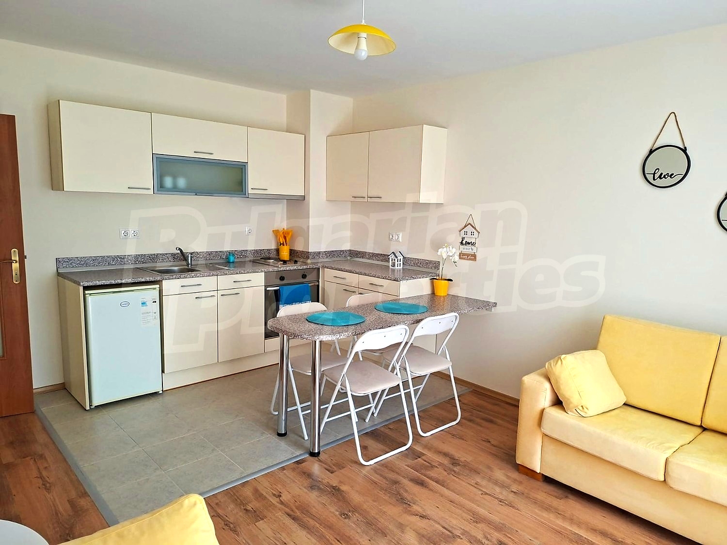 We present for sale a newly-furnished one-bedroom apartment in gated complex Kavarna Paradise, located 5 minutes from the beach, in the quiet and peaceful coastal area of Kavarna (1.5 km to the seaside town). The complex is well-maintained, with a large swimming pool with sun loungers and children's area, Wi-Fi access in the common areas, as well as bicycles and car rental. There is a restaurant serving Bulgarian dishes 100 metres away, and shops and other facilities 400 metres away.