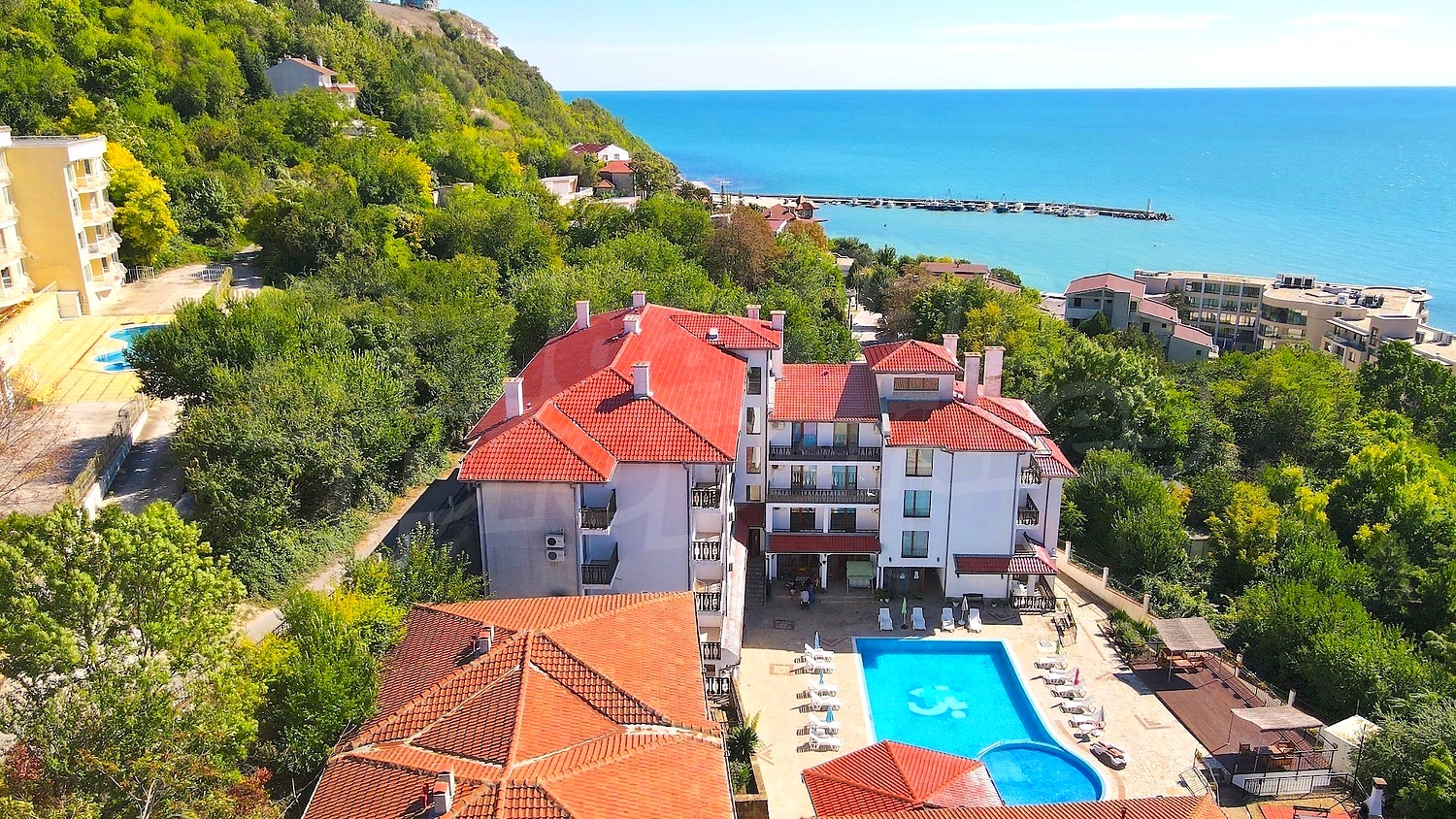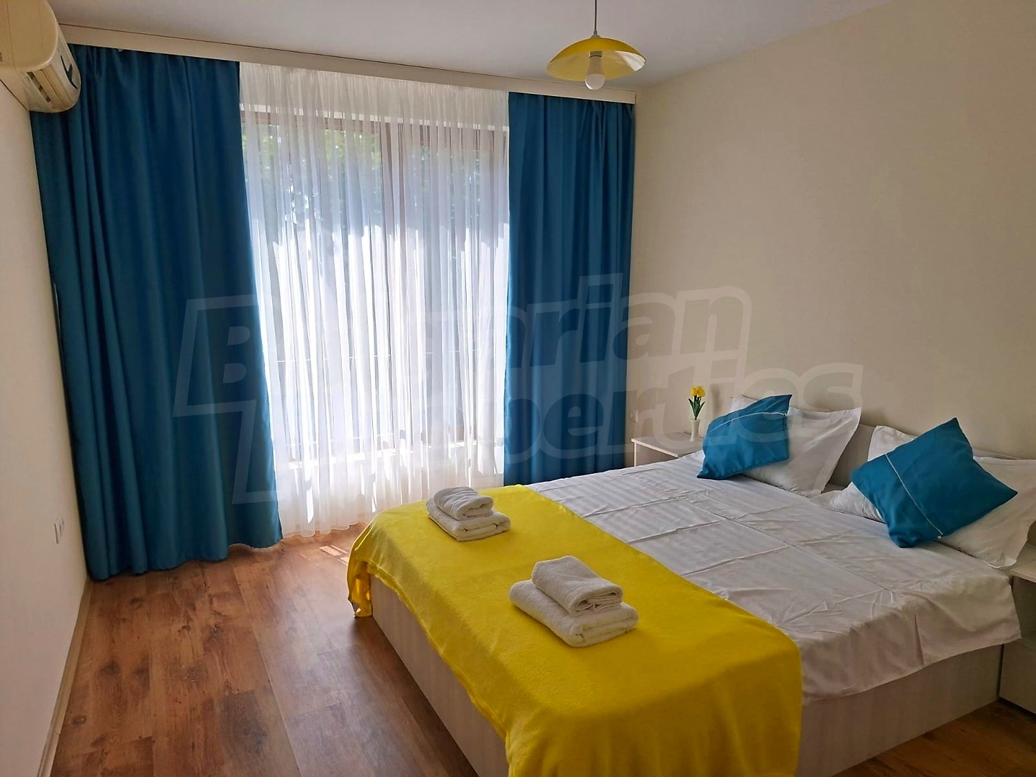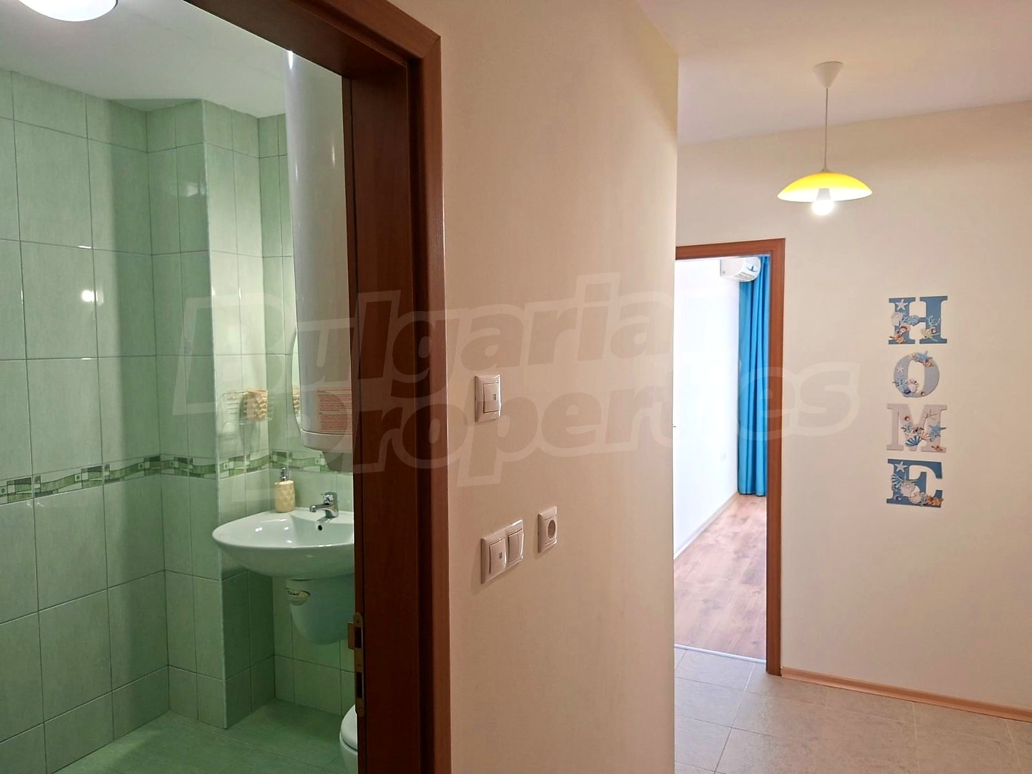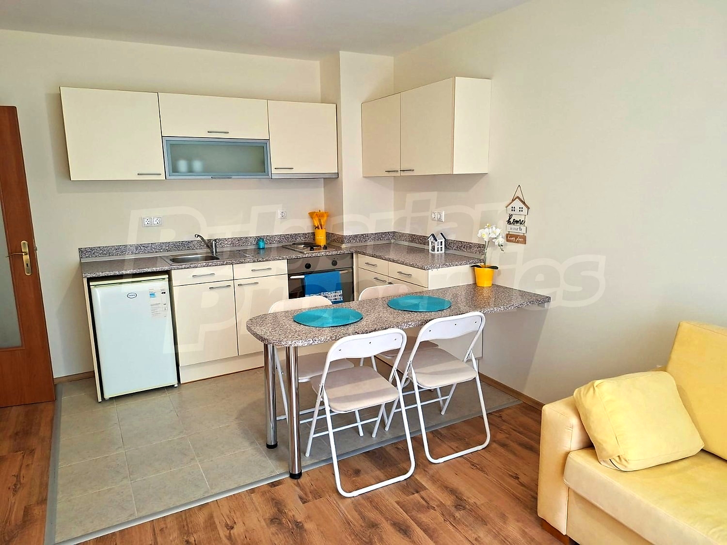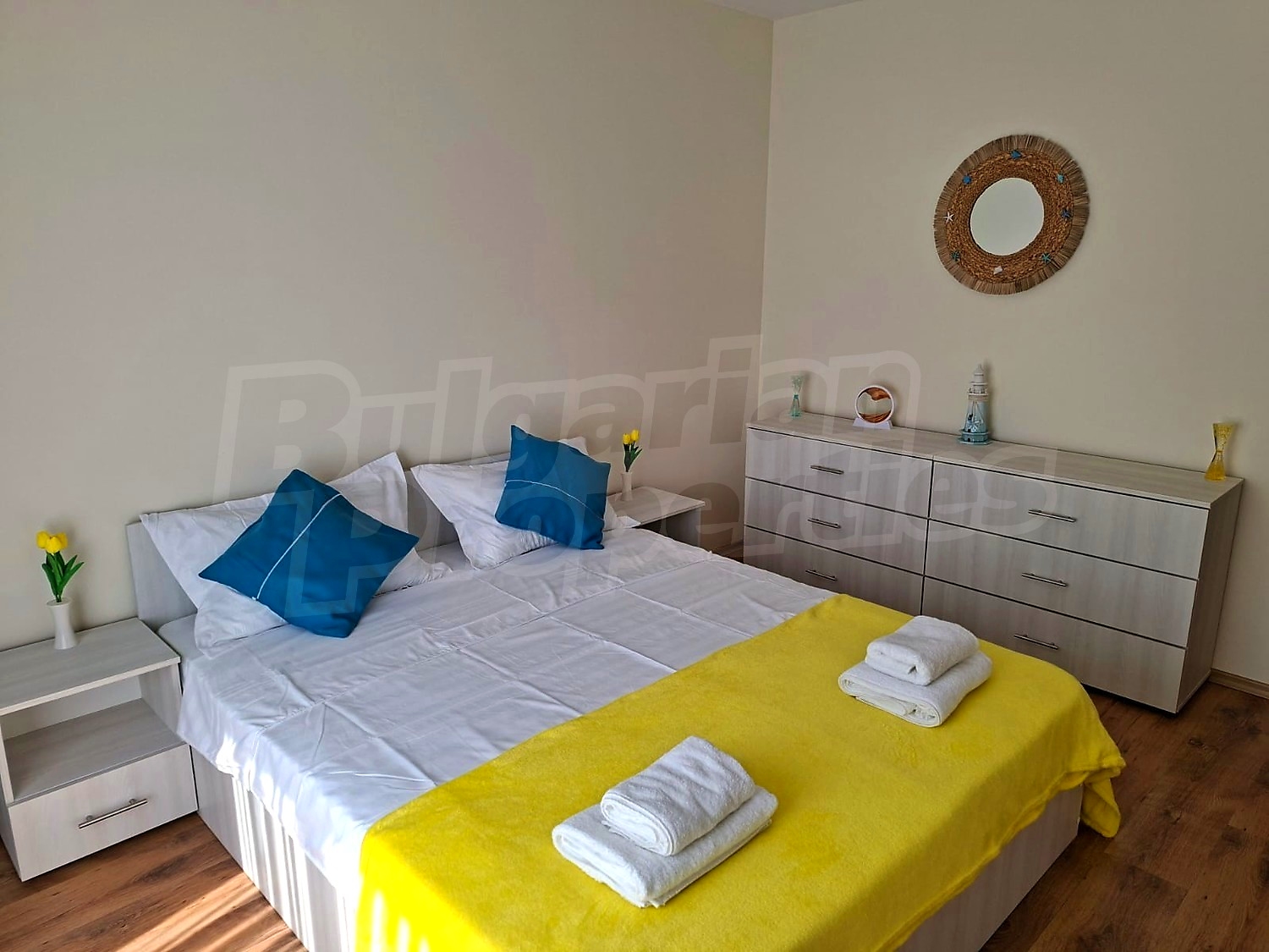 We present for sale a newly-furnished one-bedroom apartment in gated complex Kavarna Paradise, located 5 minutes from the beach, in the quiet and peaceful coastal area of Kavarna (1.5 km to the seaside town). The complex is well-maintained, with a large swimming pool with sun loungers and children's area, Wi-Fi access in the common areas, as well as bicycles and car rental. There is a restaurant serving Bulgarian dishes 100 metres away, and shops and other facilities 400 metres away.