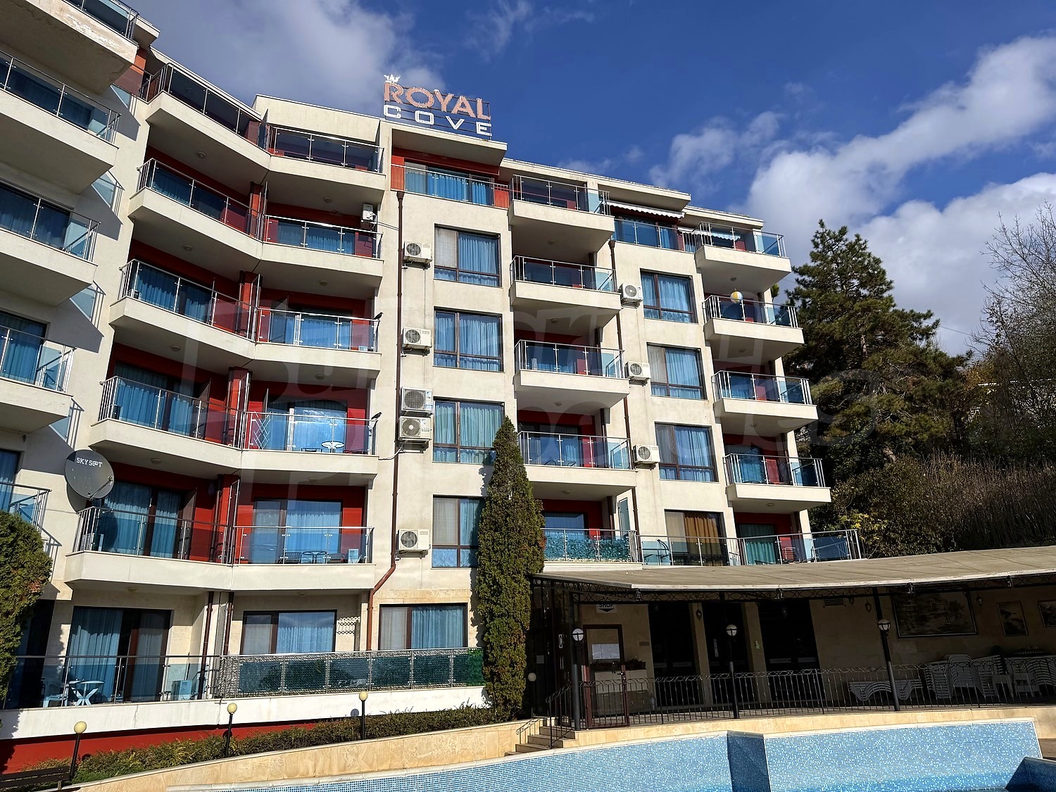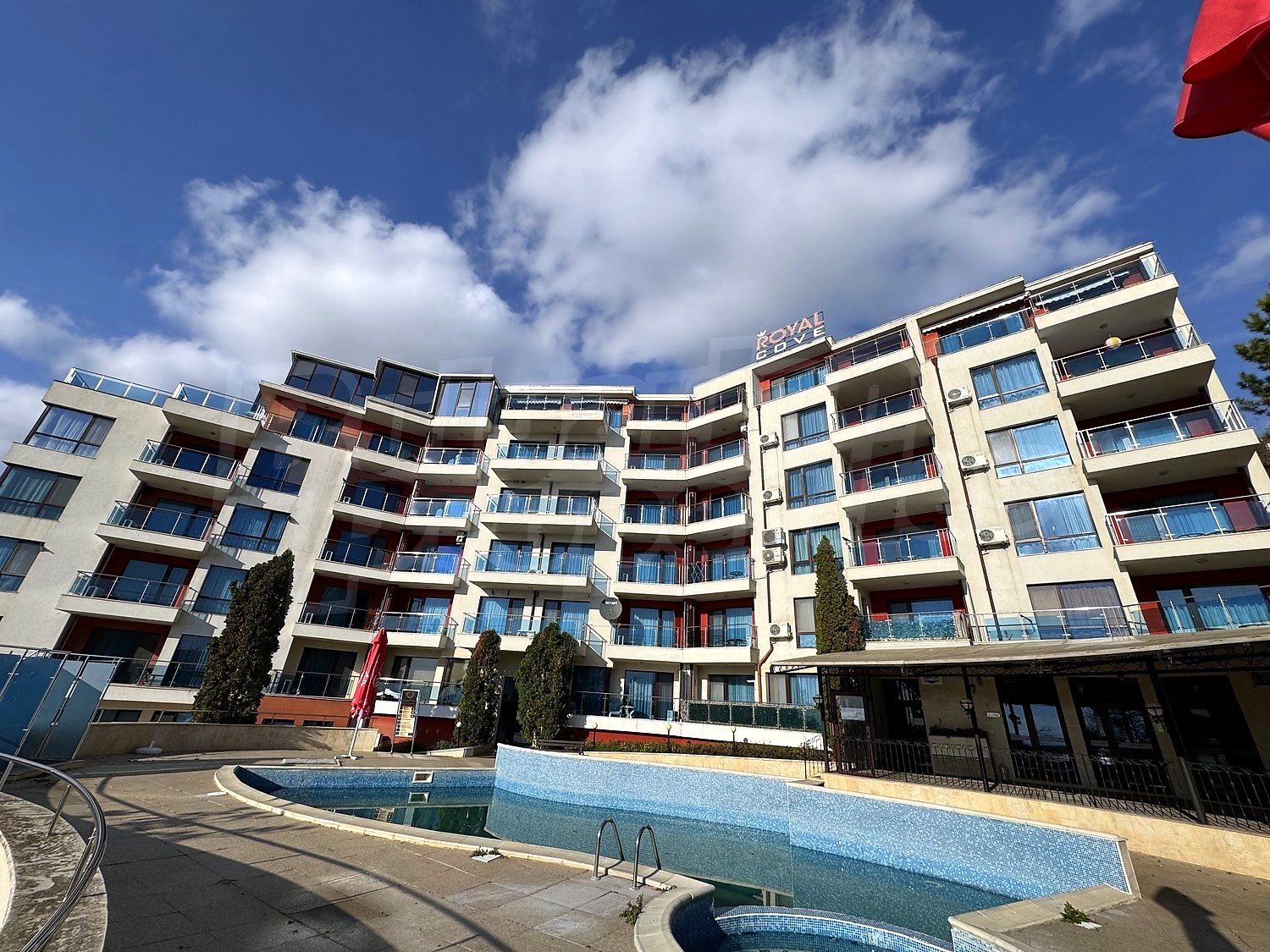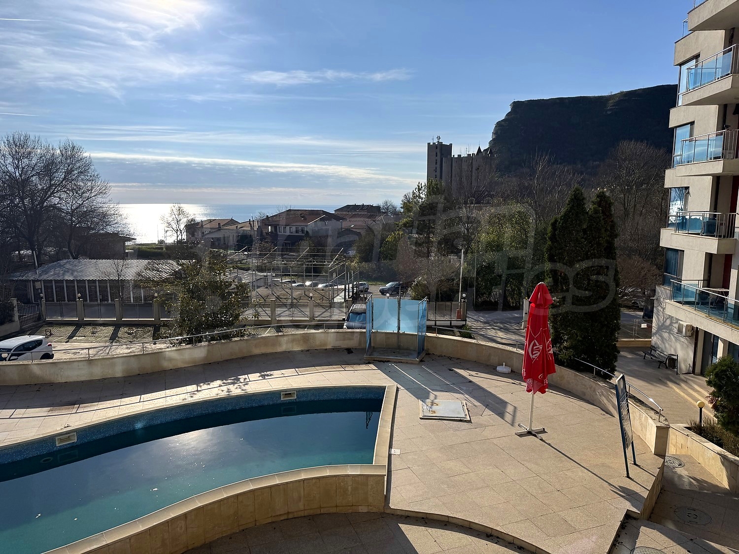 We offer you this 1-bedroom apartment with a total area of 76 m2 which is situated in a gated development. It was constructed in 2006. The property has air-conditioners. A standard air-conditioner - also available. External insulation, interior doors, laminate flooring, painted walls, suspended ceiling, tiled flooring and upvc window frames are available in the property. The property is connected to electricity and water. Some of the other available facilities that you will certainly consider important include: a bathroom with toilet, an open-air parking lot, a lift, a sauna and a swimming pool. From the inside you will be able to enjoy wonderful sea views, swimming pool views and views to inner garden.