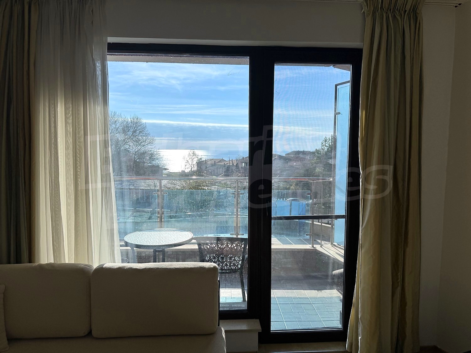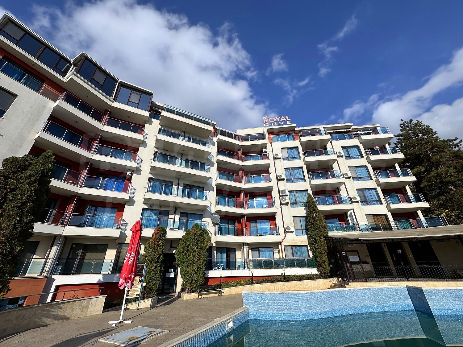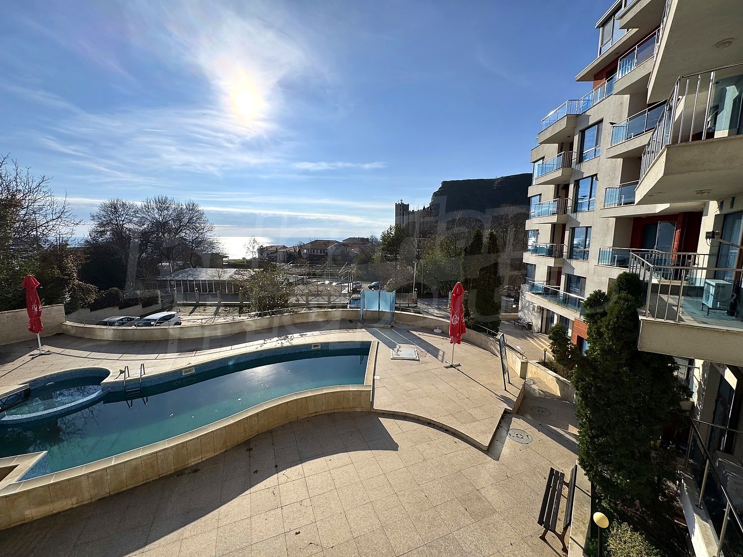 We offer you this 1-bedroom apartment with a total area of 76 m2 which is situated in a gated development. It was constructed in 2006. The property has air-conditioners. A standard air-conditioner - also available. External insulation, interior doors, laminate flooring, painted walls, suspended ceiling, tiled flooring and upvc window frames are available in the property. The property is connected to electricity and water. Some of the other available facilities that you will certainly consider important include: a bathroom with toilet, an open-air parking lot, a lift, a sauna and a swimming pool. From the inside you will be able to enjoy wonderful sea views, swimming pool views and views to inner garden.