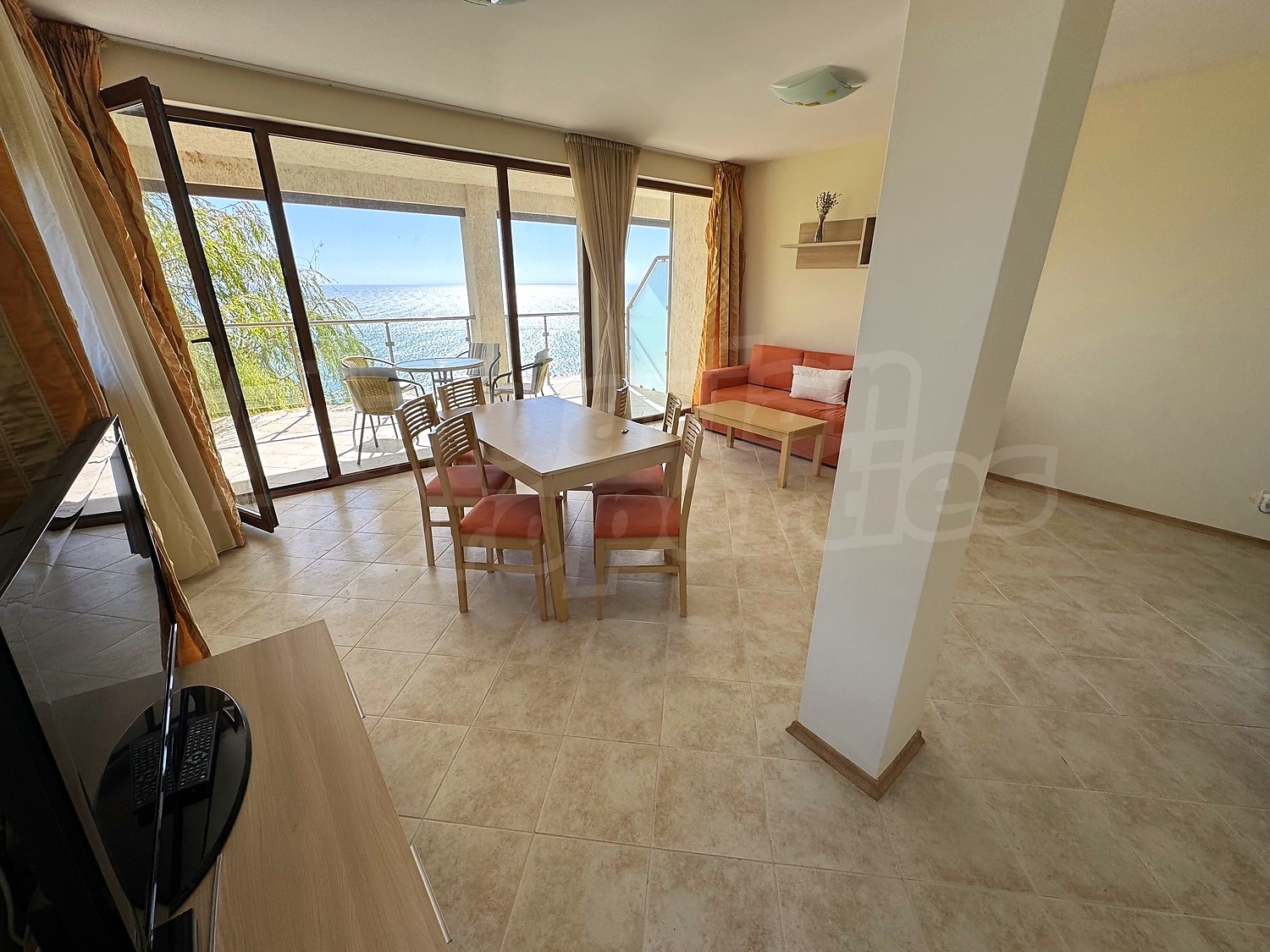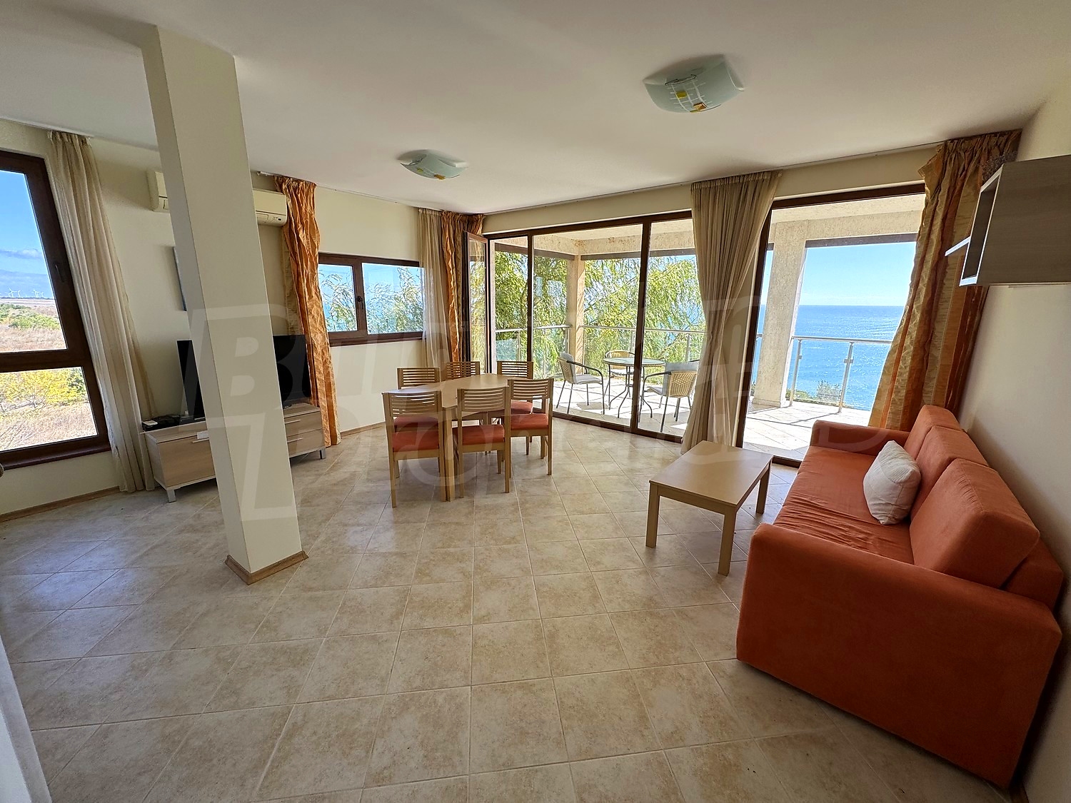 An excellent offer for a comfortably furnished and equipped two-bedroom apartment with wonderful sea view from Cape Kaliakra to Cape Emine, on the first line in the complex July Morning, located in the middle part of the northern Bulgarian Black Sea coast, in a quiet, secluded location, away from the noise of the resorts, but only 3-4 minutes drive to the coastal area of Kavarna. It is located 15 km from Cape Kaliakra, 20 km from the beautiful town of Balchik, with a fast and convenient connection to Varna airport.