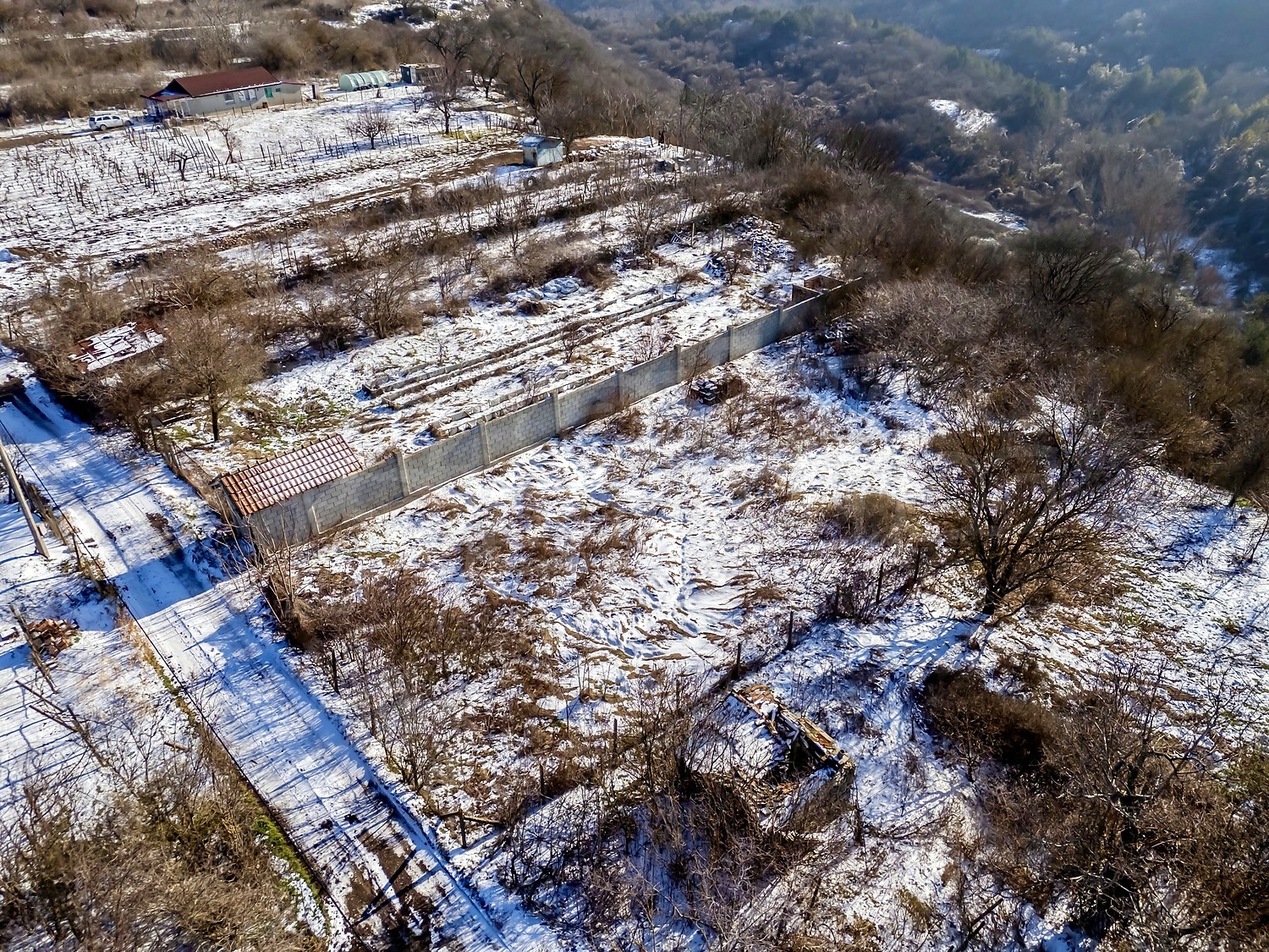 The plot (1250 sq.m.) comes with an approved Detailed Development Plan and a completed architectural project for a single-storey house with a total area of 83.70 sq.m. The design includes two bedrooms, a bathroom, a bright living area with kitchen and a veranda – an excellent base for a comfortable permanent home or a holiday property.