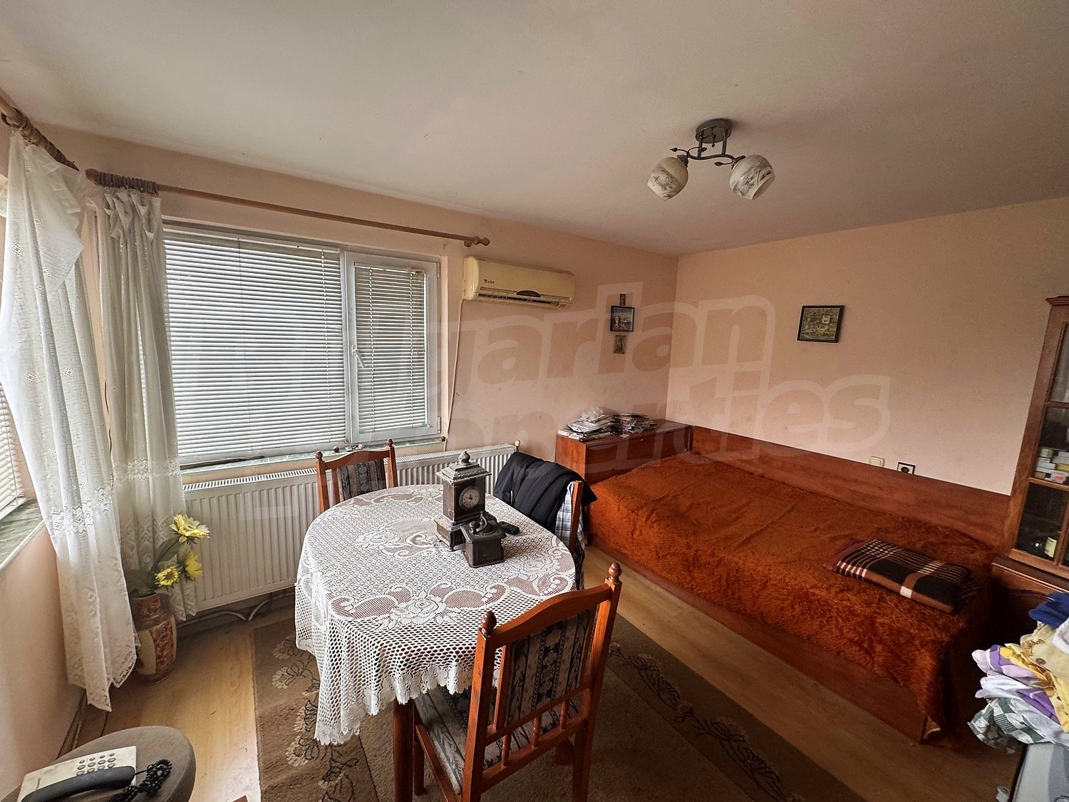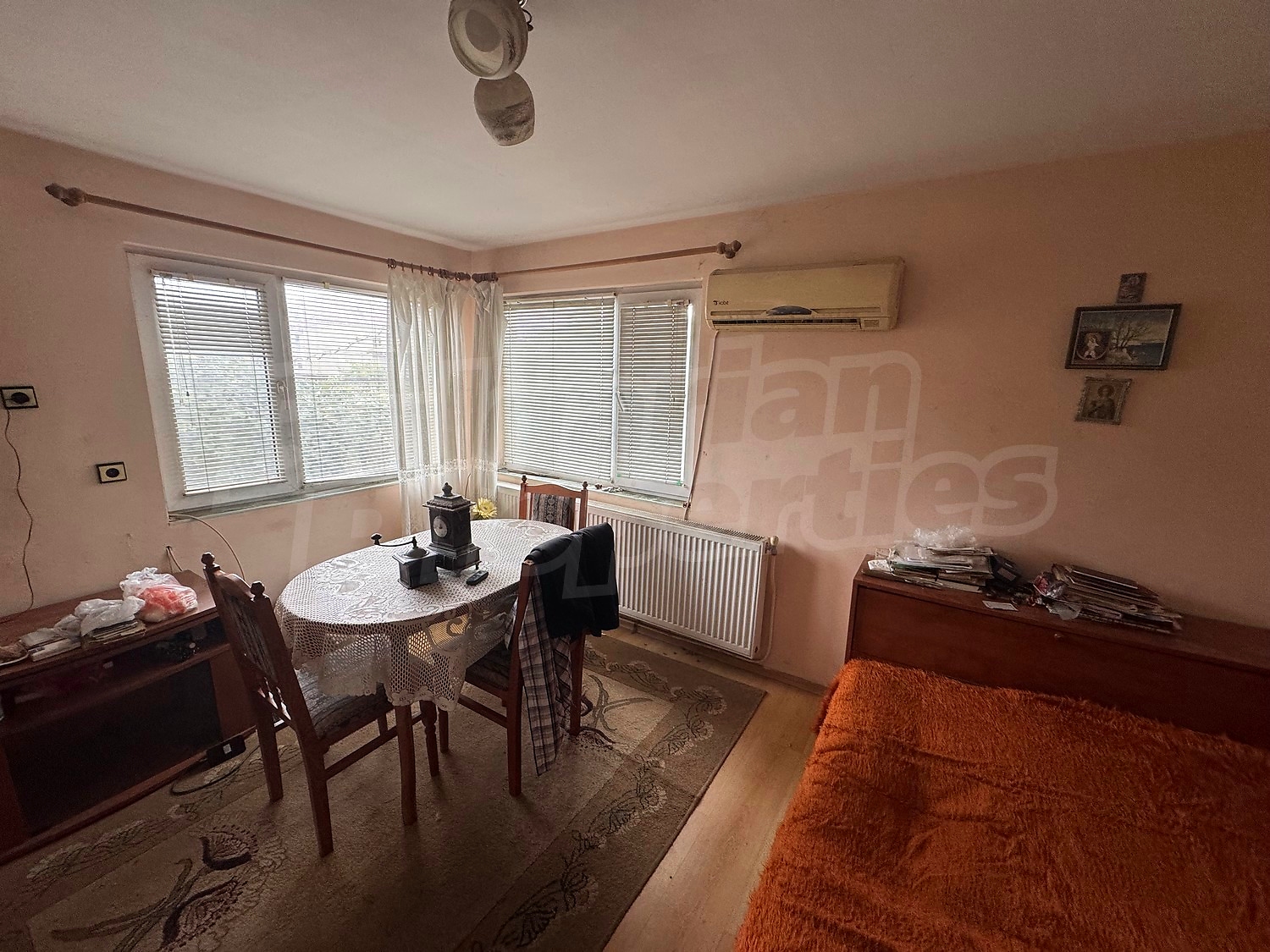 The house is sold with the furniture from the photos, without the pictures. The heating is with gas. The dwelling needs renovation. It is equipped with internet and cable TV.