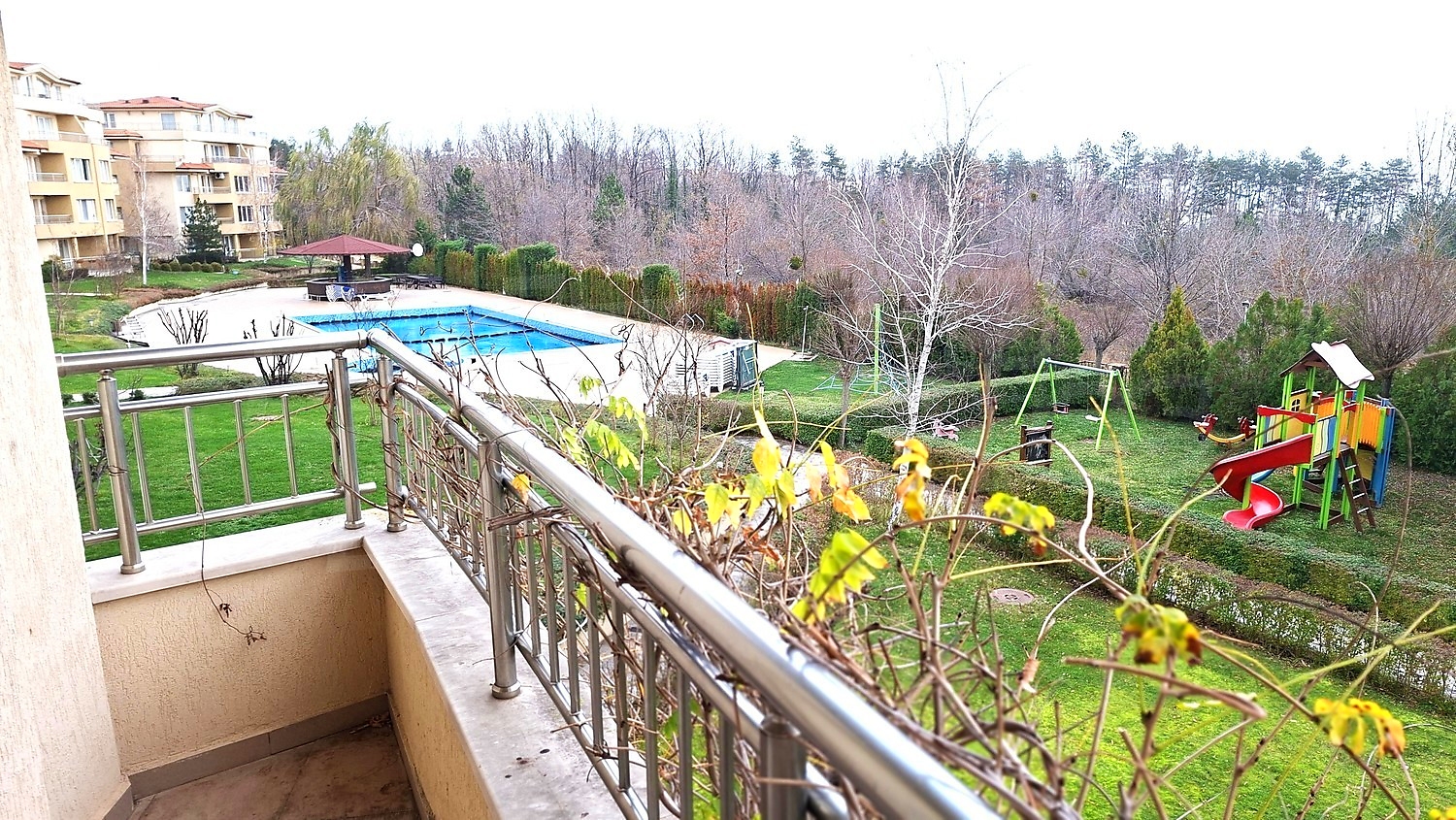 The complex provides parking, a swimming pool, a bar, a children’s playground and year-round security. The peaceful setting makes the property suitable for both permanent residence and rental investment with attractive return potential.