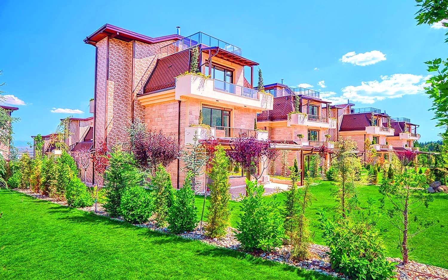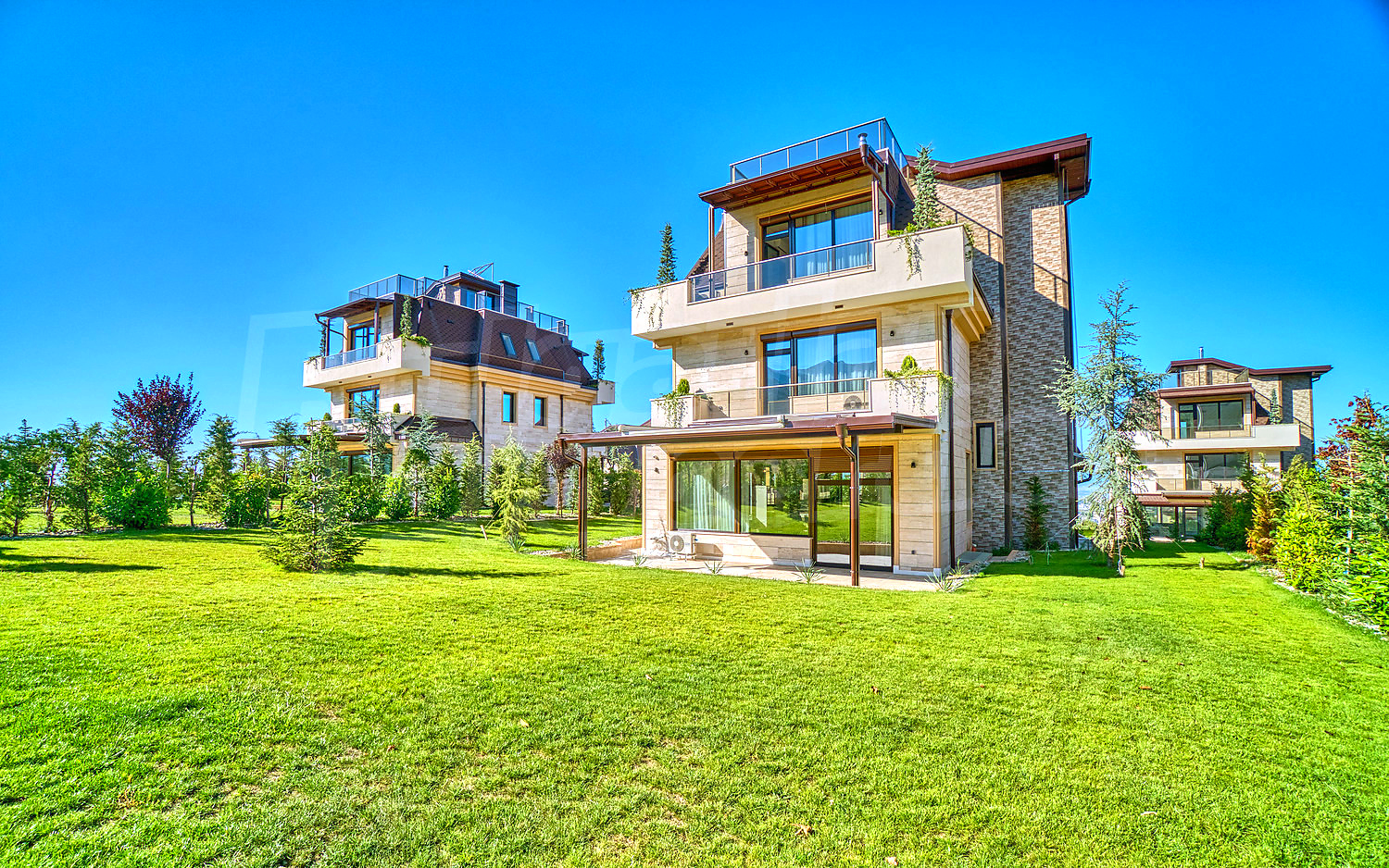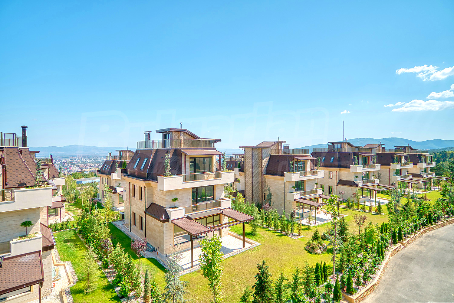 The newly built complex consists of 20 single-family houses, located on 25 000 sq.m., each with a total area of 653 sq.m. The fully landscaped yards vary between 715 sq.m. and 1400 sq.m. with irrigation systems in place, as well as all green common areas in the complex.