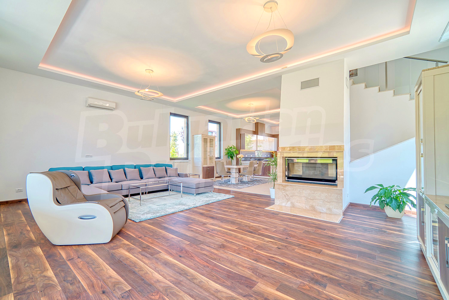 The house is fully furnished and consists of a living room, dining room and kitchen, two verandas and 4 bedrooms, each with its own bathroom, wardrobe and balcony. To make the convenience even greater, the house has a gym, a sauna, a garage for two cars and 4 outdoor parking spaces. On the roof there is a panoramic terrace with an area of 62 square meters, which is extremely suitable for barbecues and sunbathing.