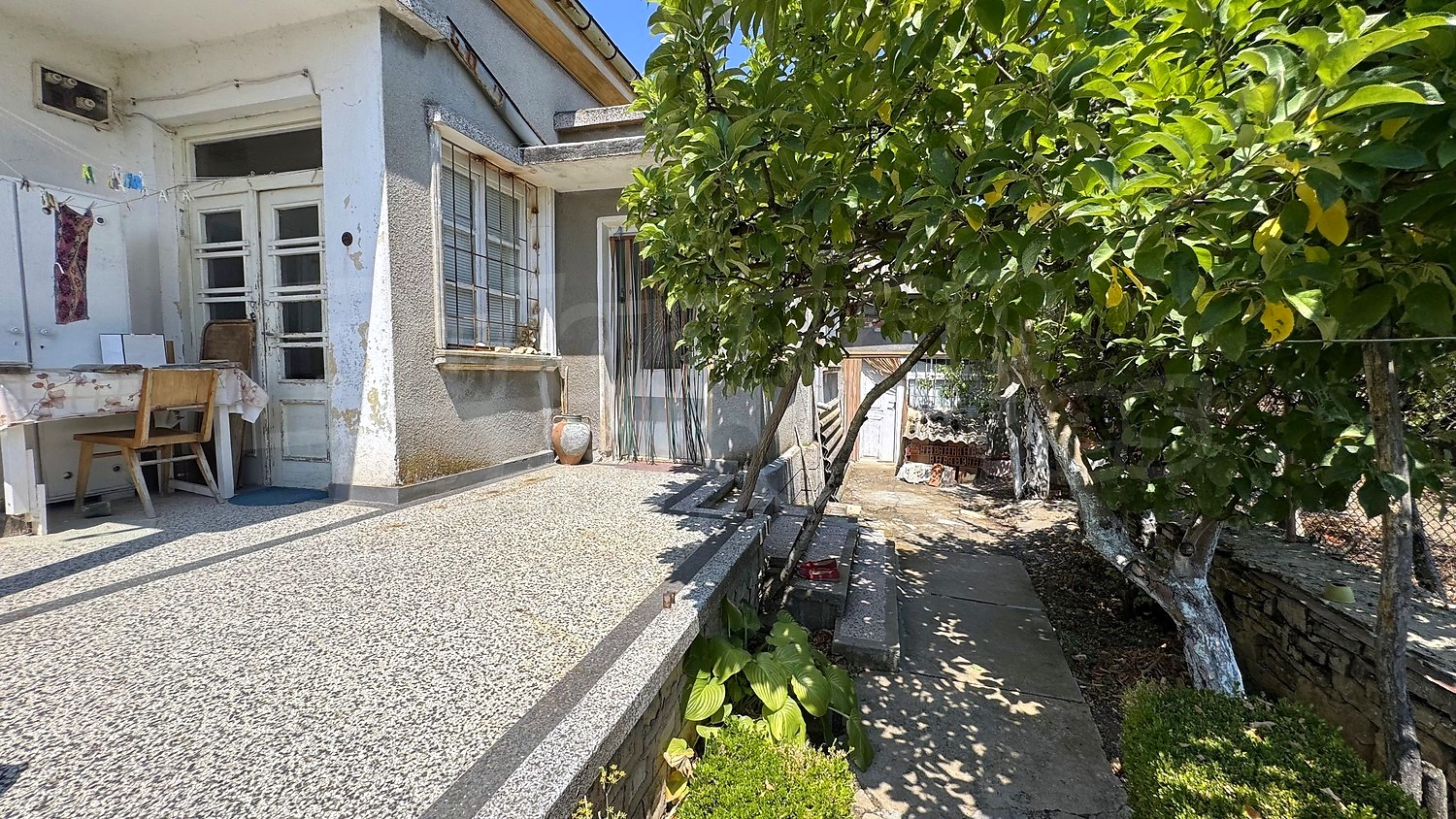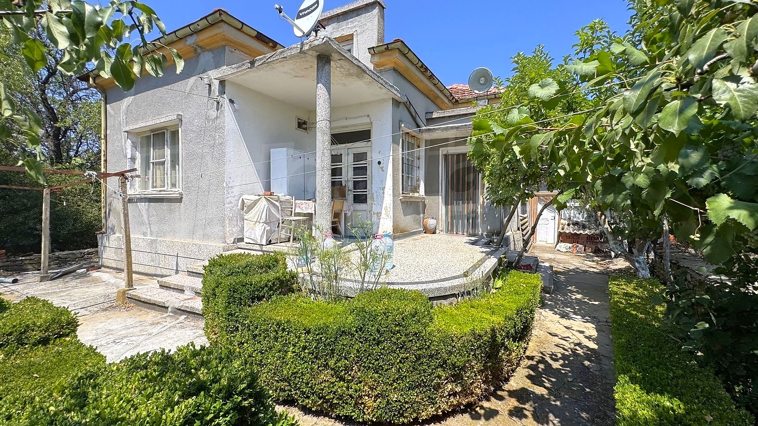 The rooms have wooden flooring and cement screed, walls - stone, brick, windows - wooden frames. The heating can be solved with electricity or wood. Structurally the house is in good general condition, but renovation of plaster and windows is recommended. The roof is sound, there are no leaks. The property has electricity and potable water. It is connected to a septic tank.