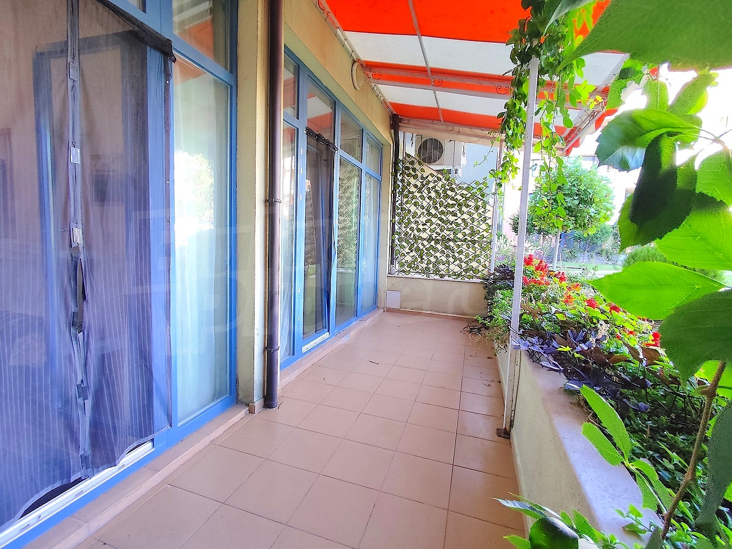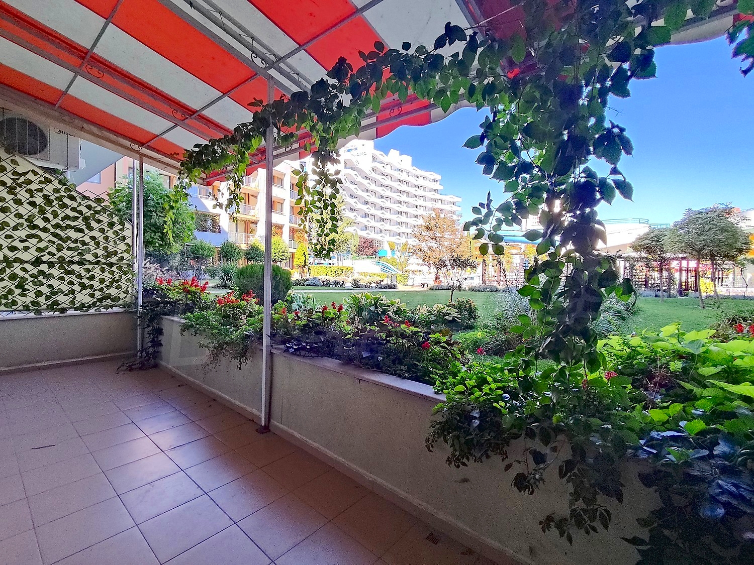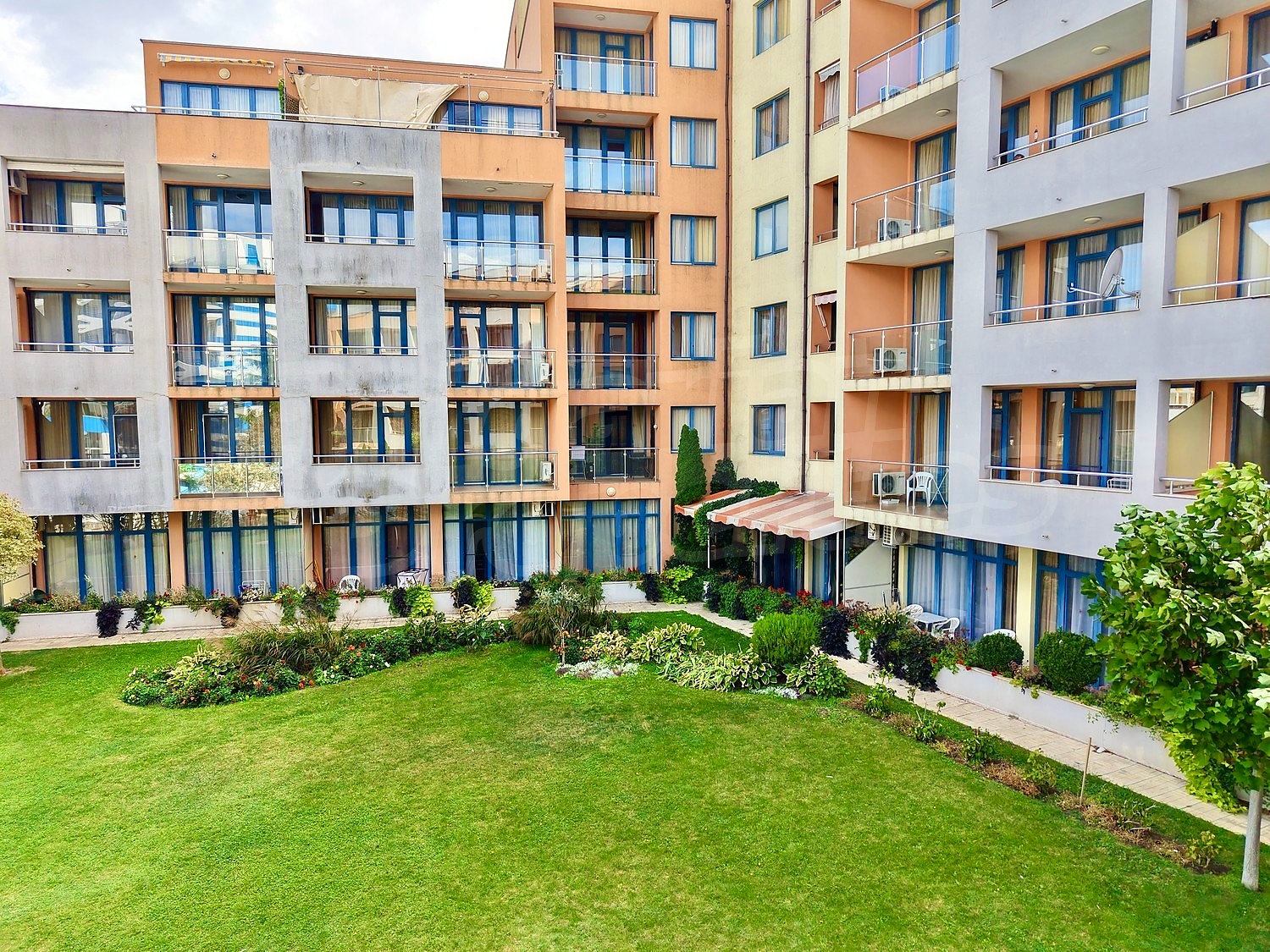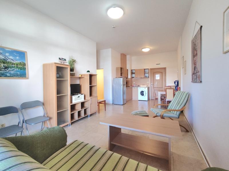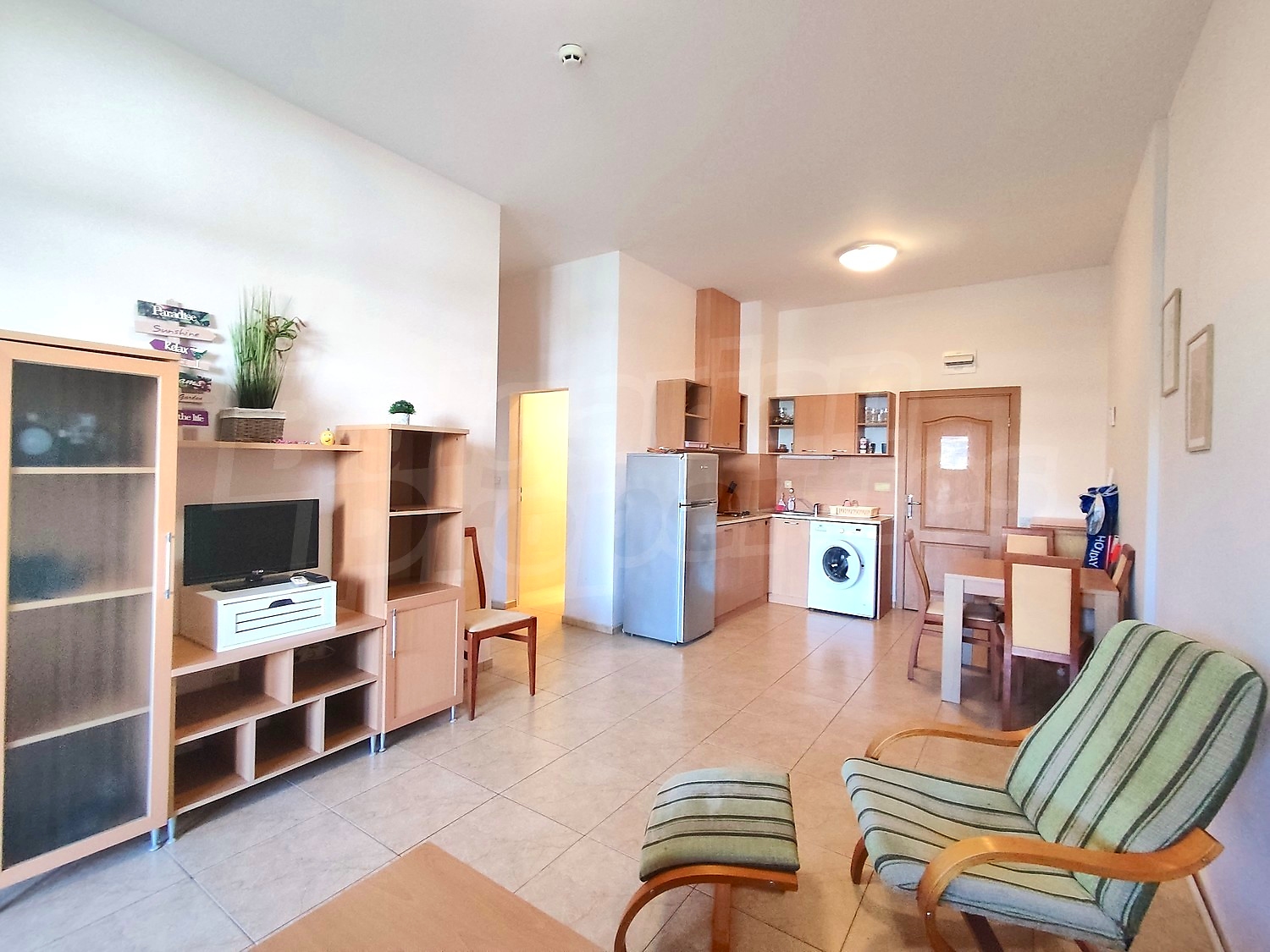 This fully furnished one-bedroom apartment offers 82 sq.m of living space, located on the ground floor of the modern Trakia Apartments complex, only 200 metres from the beach.