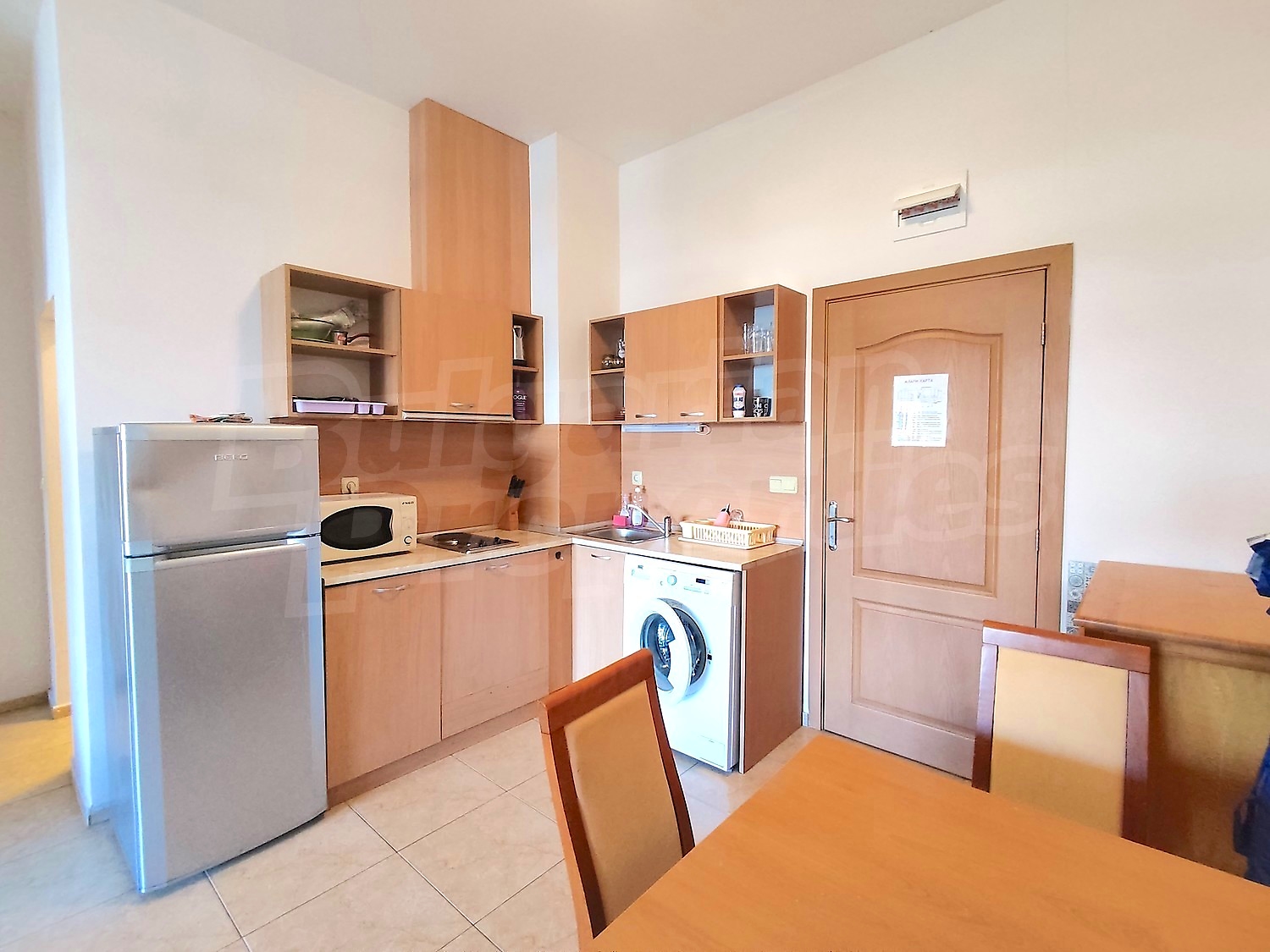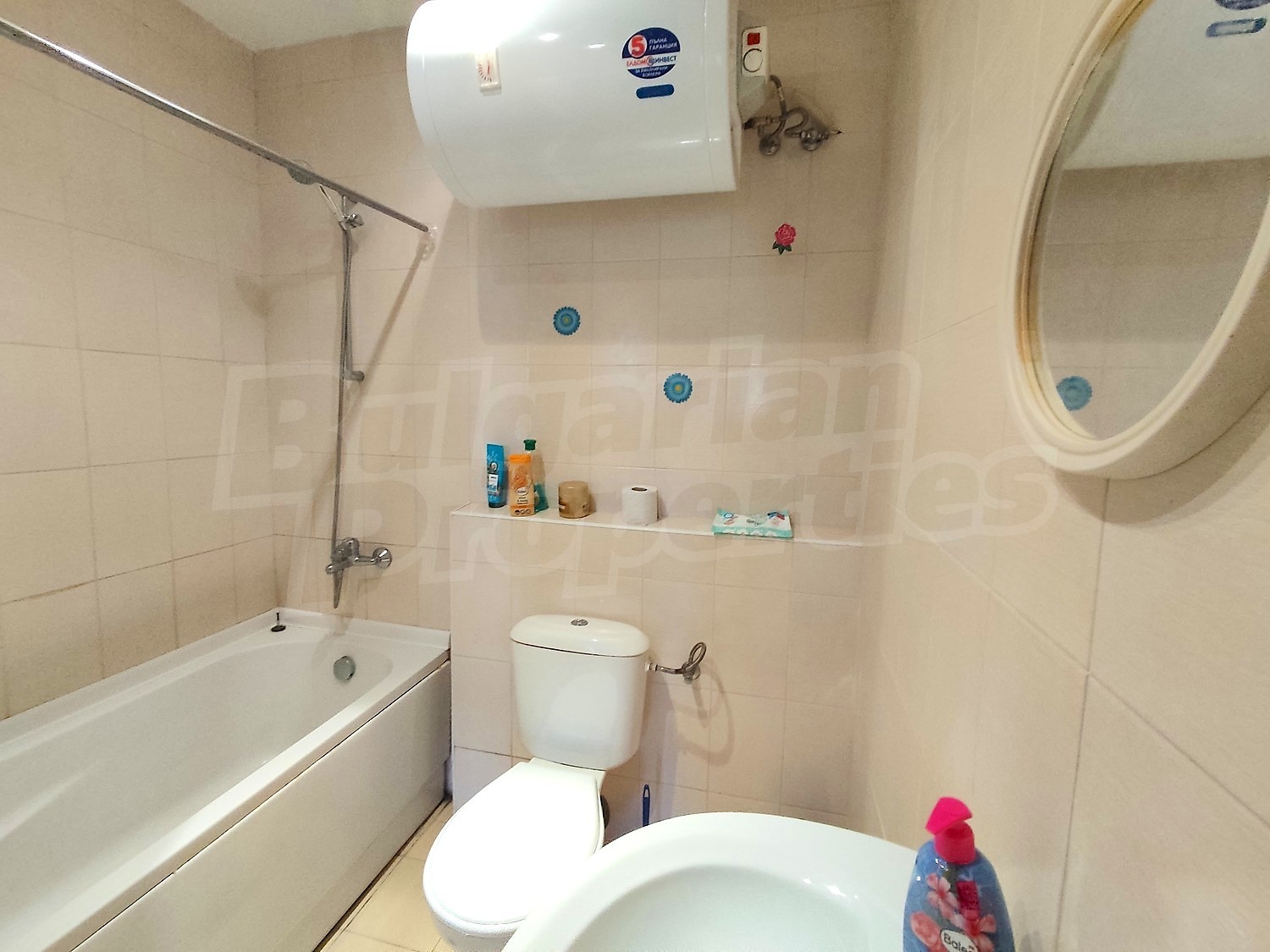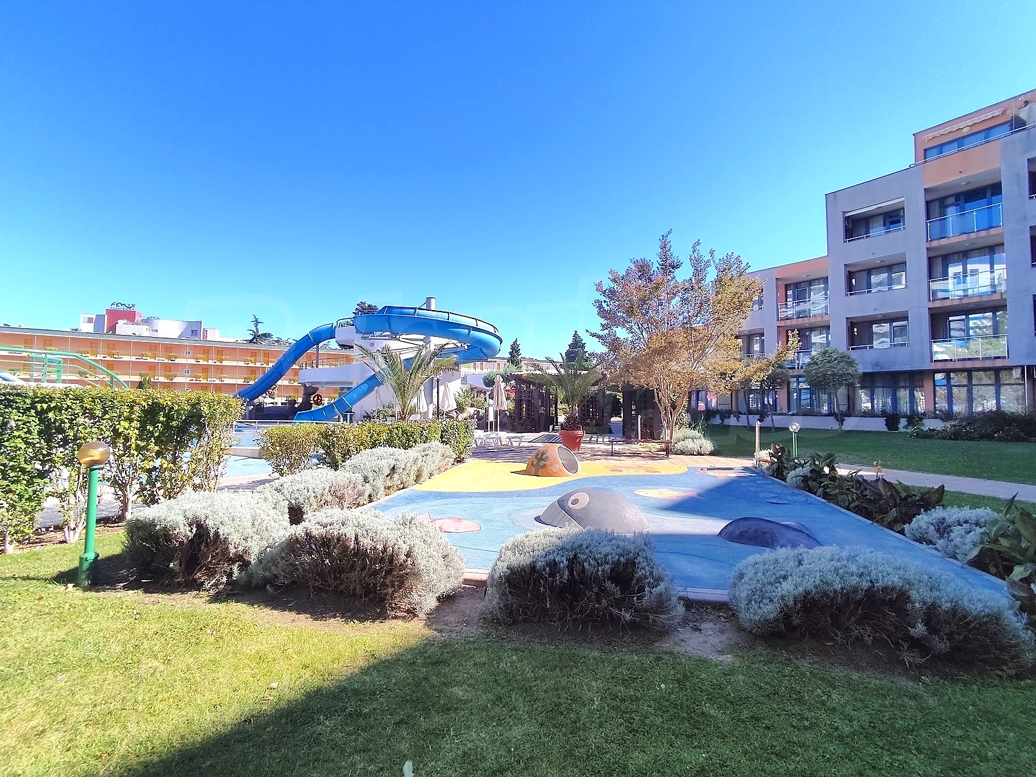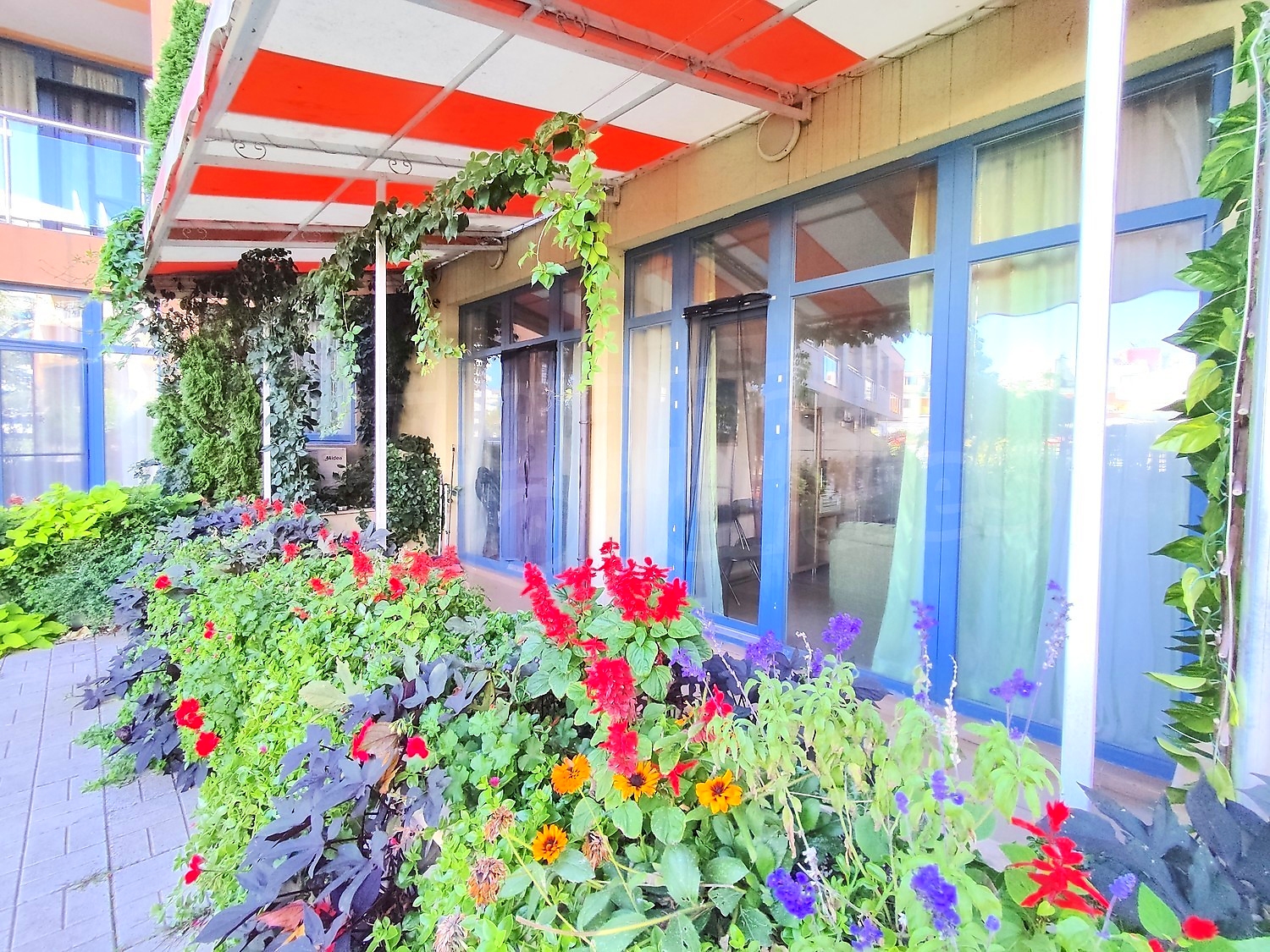 This fully furnished one-bedroom apartment offers 82 sq.m of living space, located on the ground floor of the modern Trakia Apartments complex, only 200 metres from the beach.