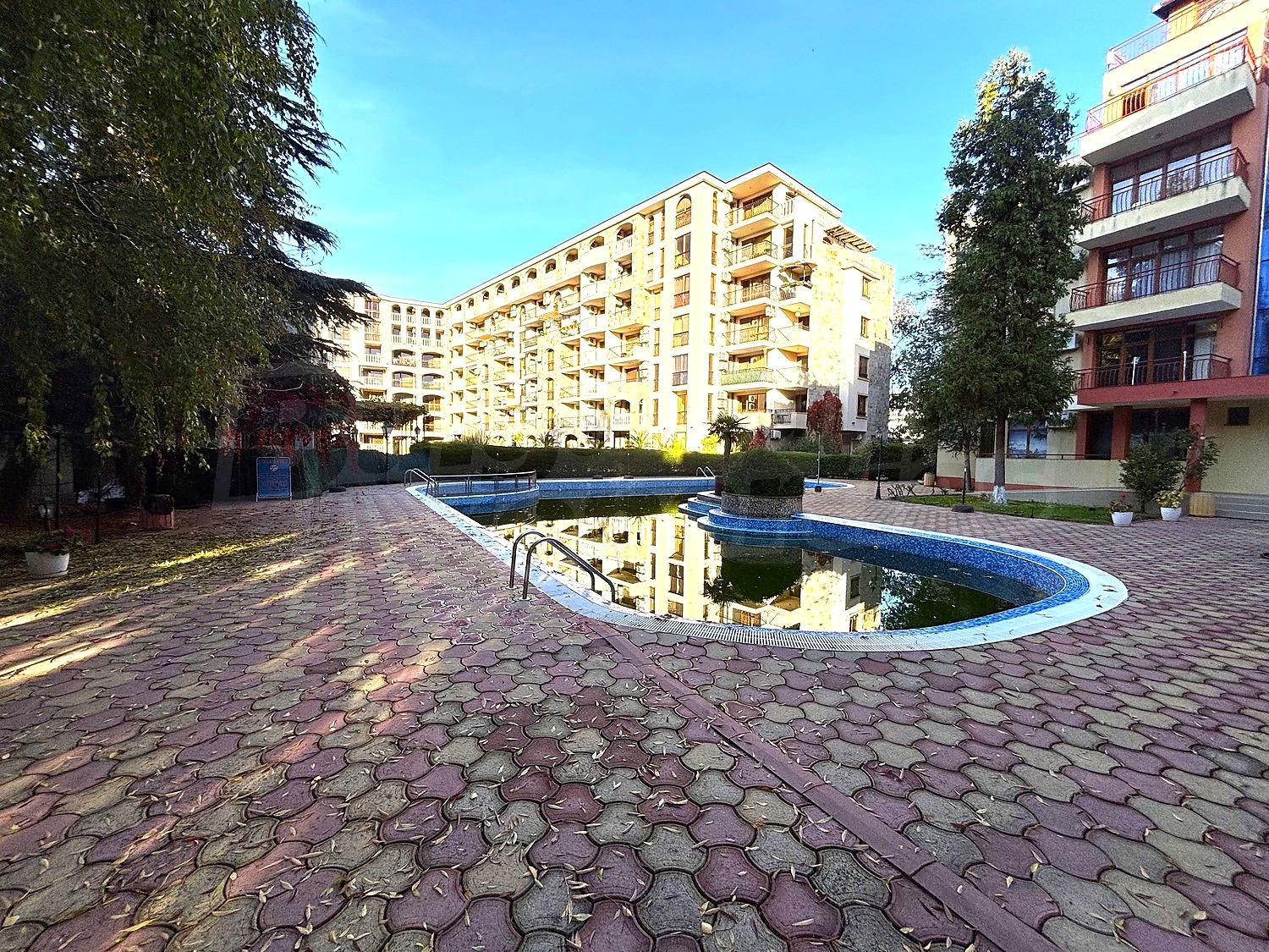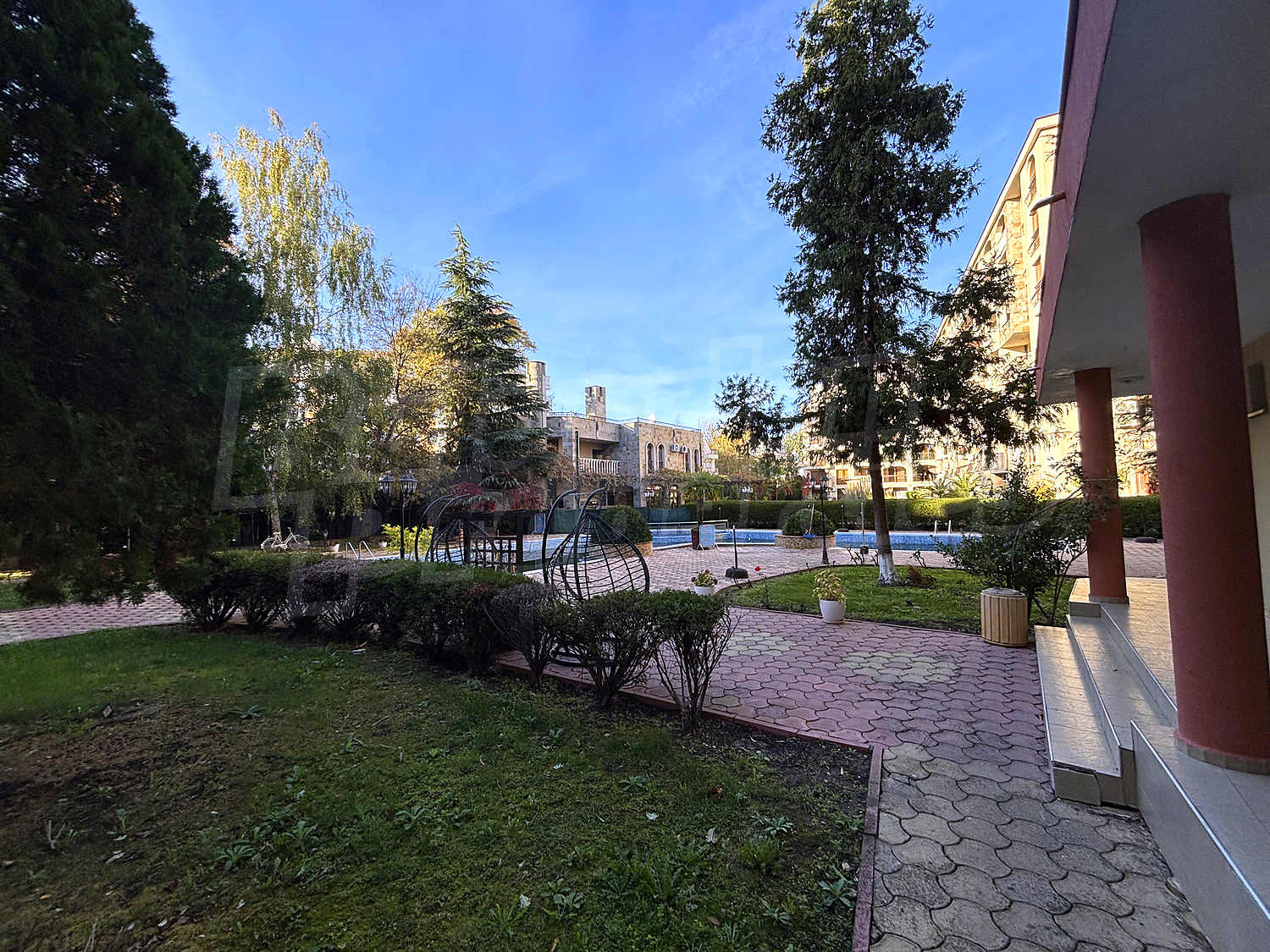 We offer for sale an one-bedroom apartment with an area of 66 sq.m., situated in a complex built in 2011. The property combines comfort and tranquility, enhanced by pleasant views of the swimming pool and the mountains.