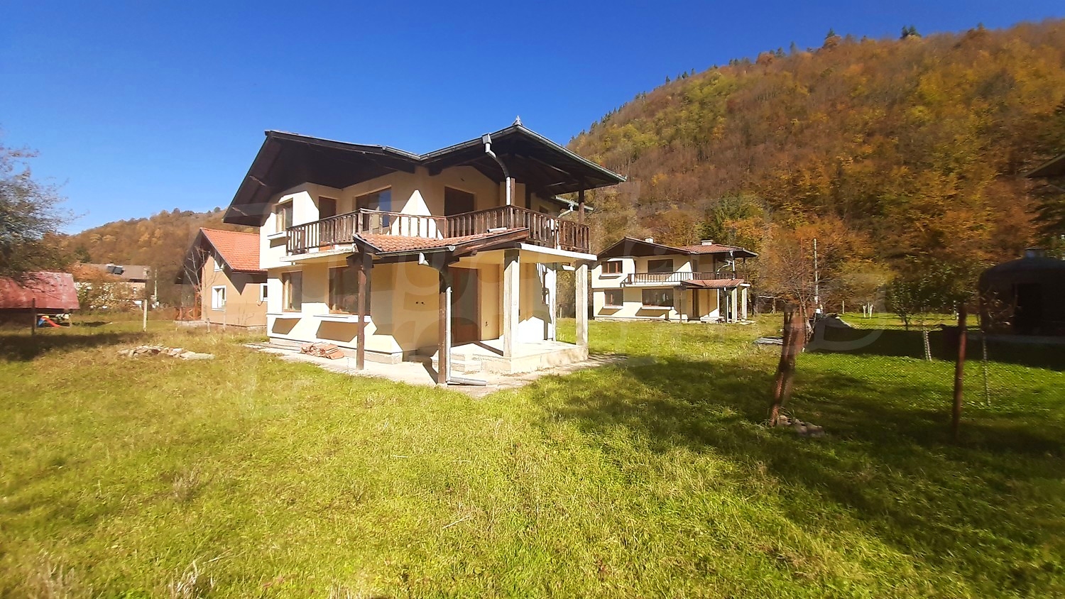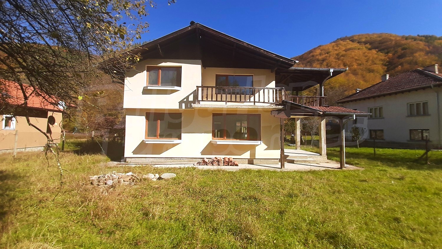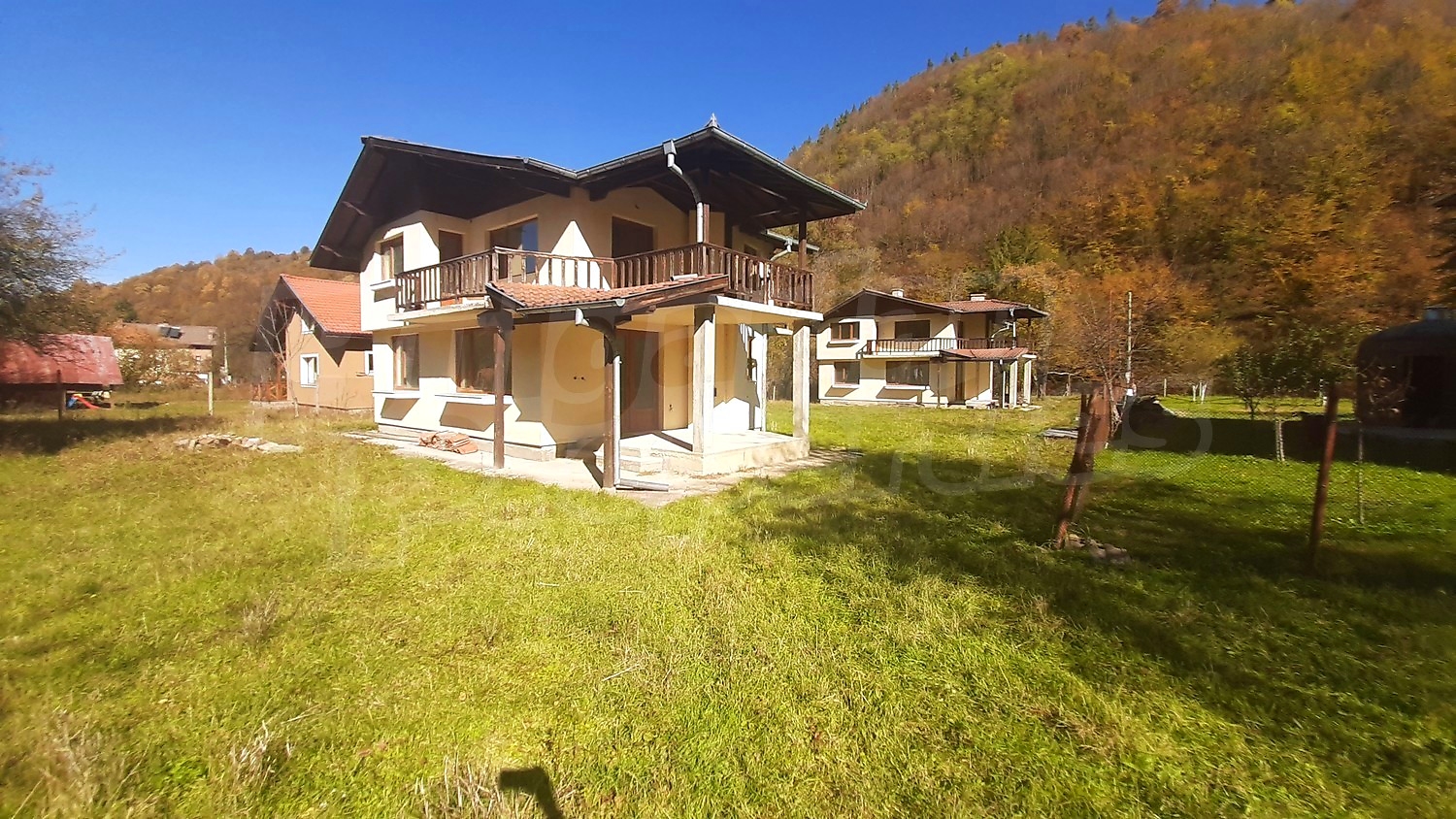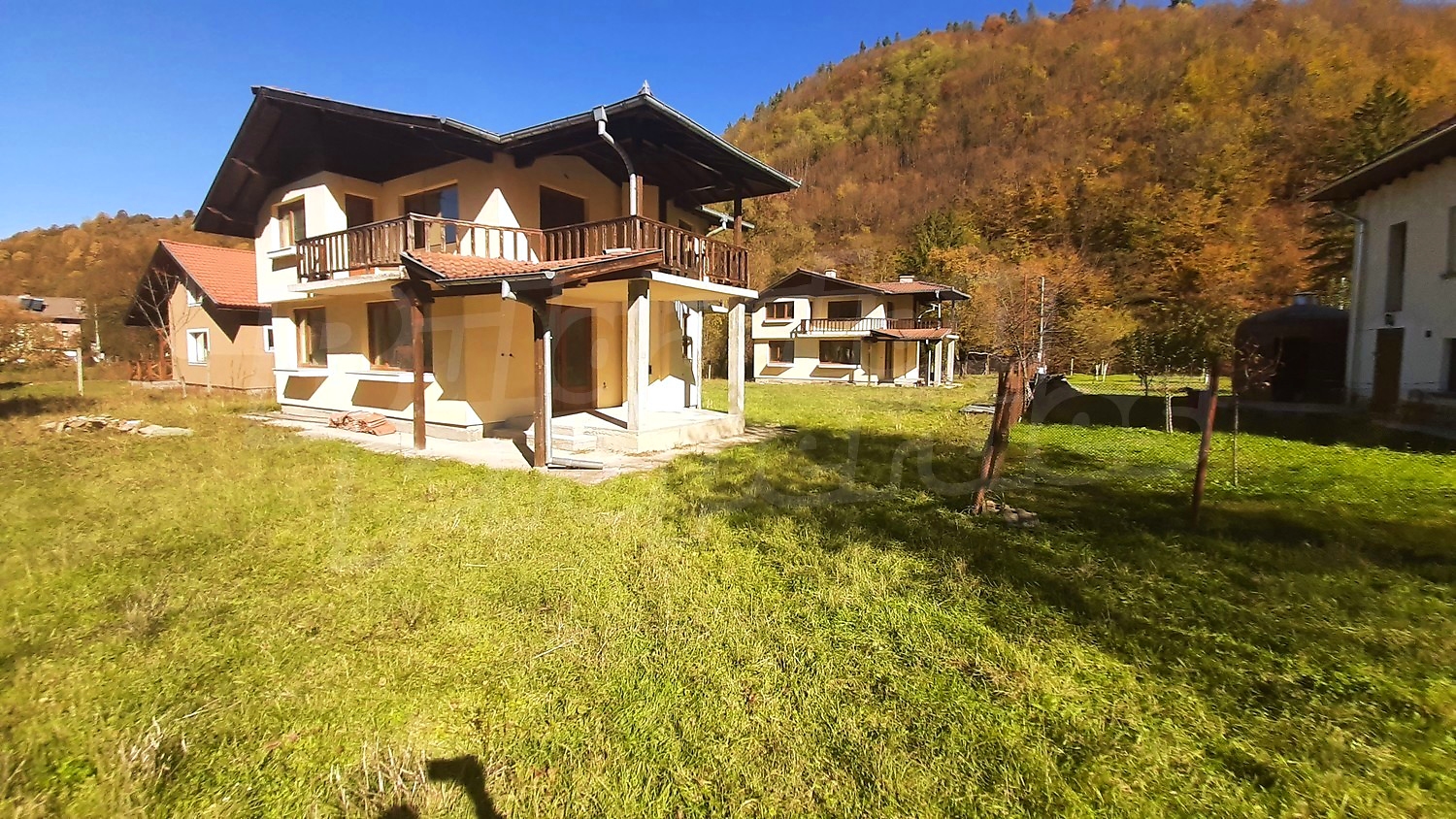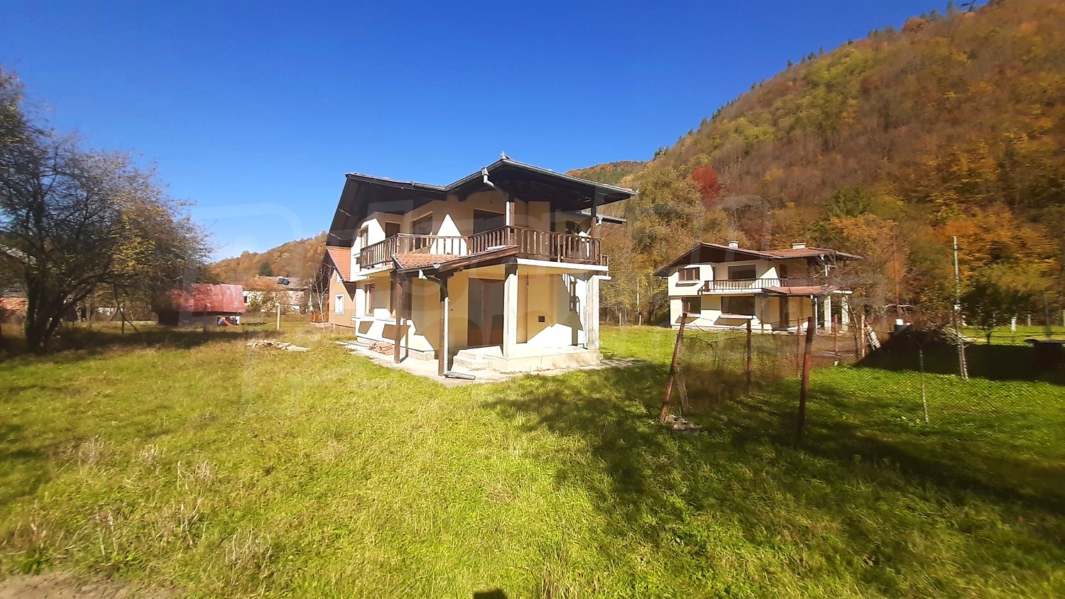 We offer you two newly built houses in the village of Ribaritsa. The property is situated between an asphalt road and a river. It consists of a plot of 1202 sq. m. and in it are built the two residential buildings.