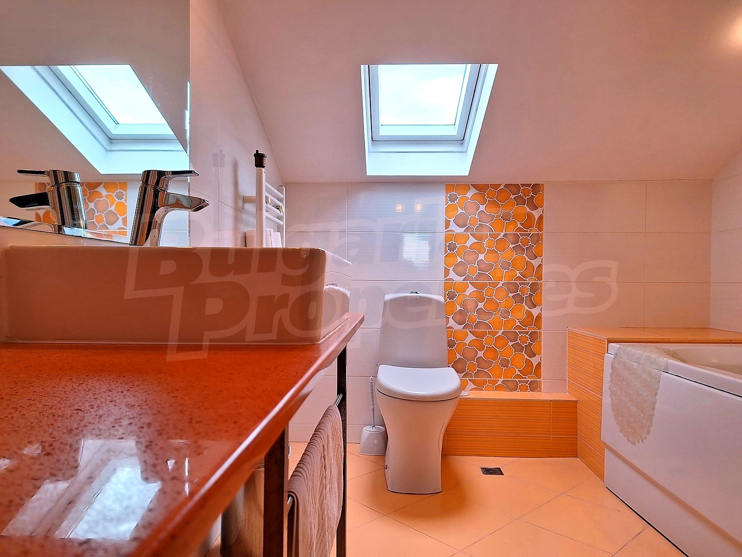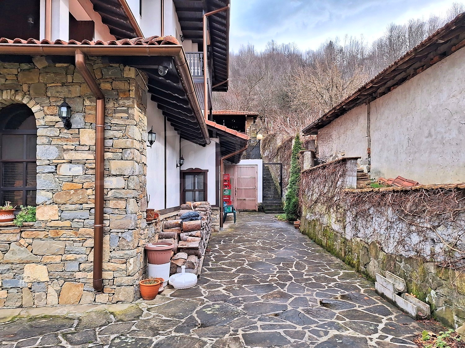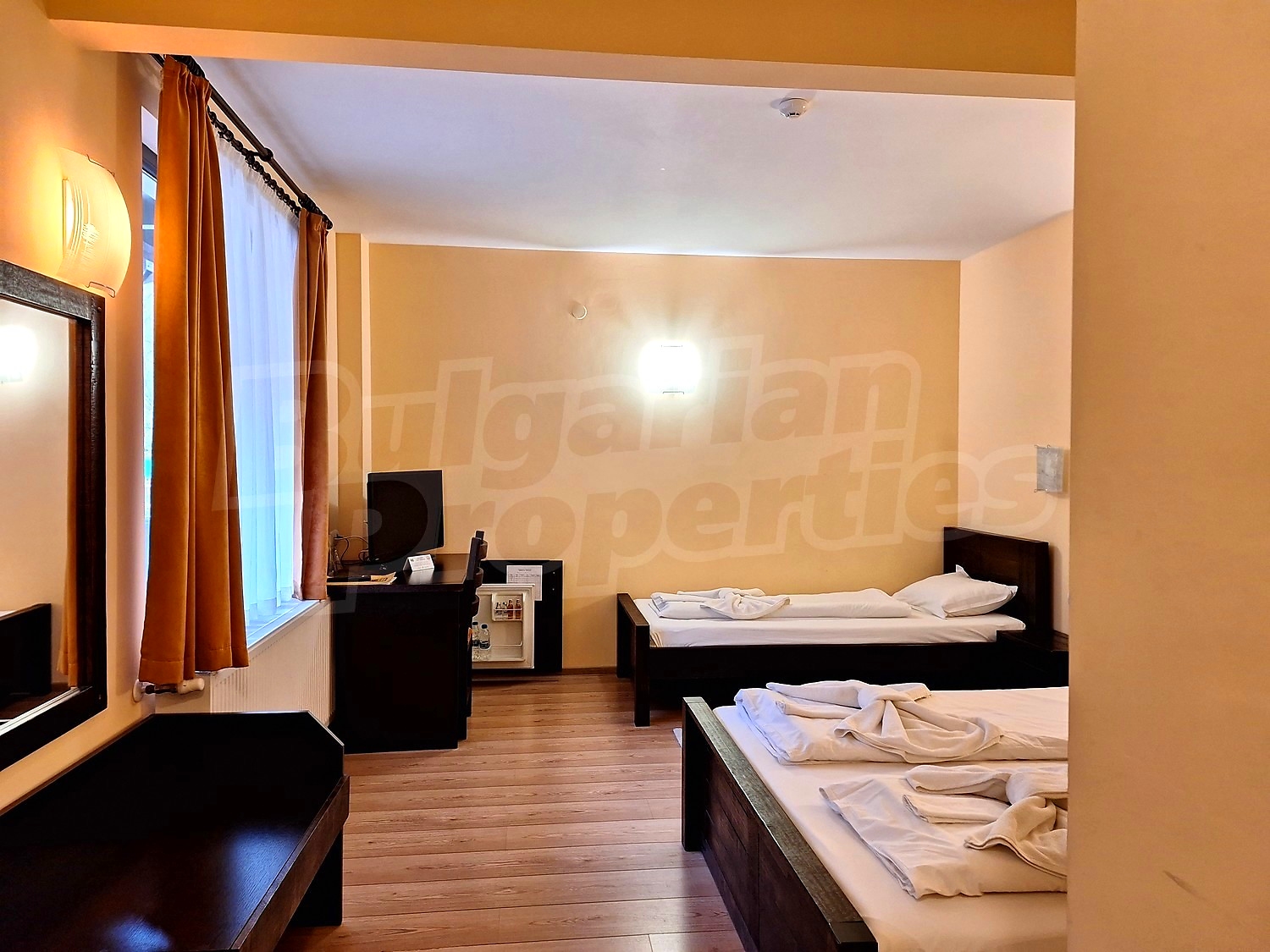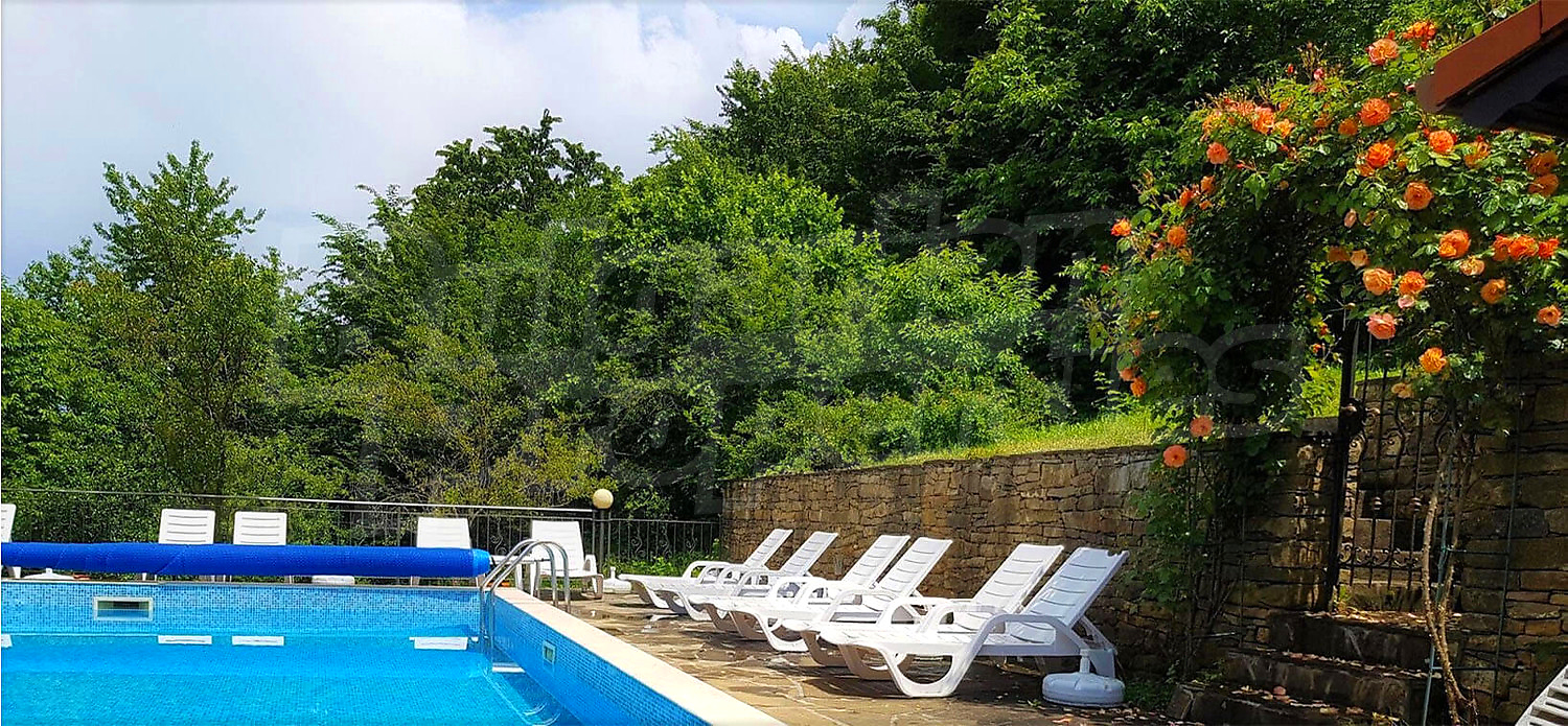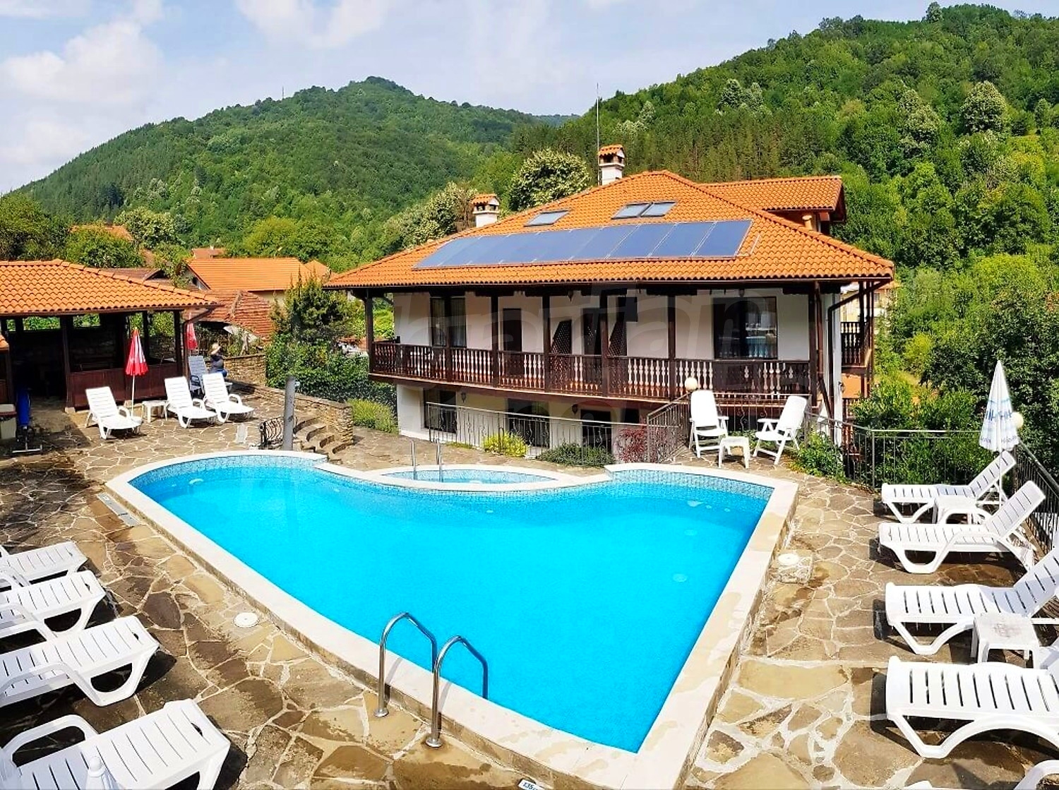 A wonderful hotel is located in amazingly beautiful place in the Mountains. The hotel capacity is 24 +6 guests. There are 9 rooms / suites each with bathroom and balcony, and views of the mountains. The family hotel has the combination of the traditional style of the Old Bulgarian house with modern amenities add a unique atmosphere. The hotel is located in a quiet place and its guests can enjoy a magnificent view of the surrounding slopes from their terraces. It has an area of 667 sq. m. distributed between the two floors. The property is located in a well maintained garden with a size of 1000 sq. m. The complex is situated in the central part of the settlement near the forest. There is large outdoor pool, barbeque, flower garden, greenery and garden lighting in the complex. The hotel was built and fully equipped with high-end materials and appliances. It is stylishly and comfortably furnished with furniture made of natural materials, which gives the property an additional charm. It consists of :