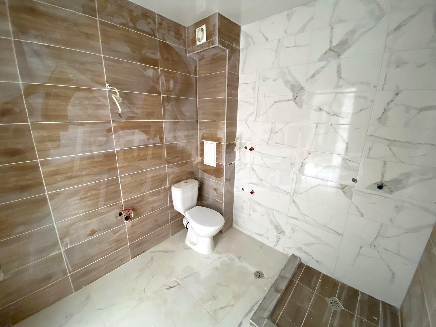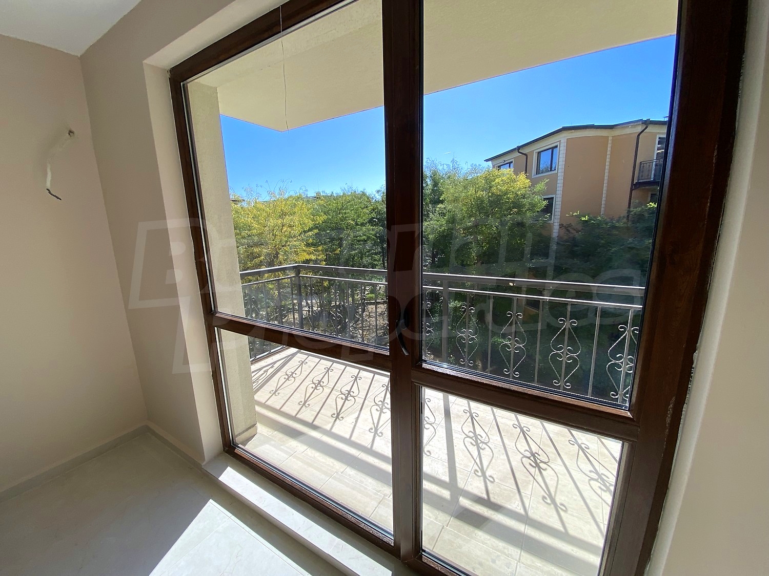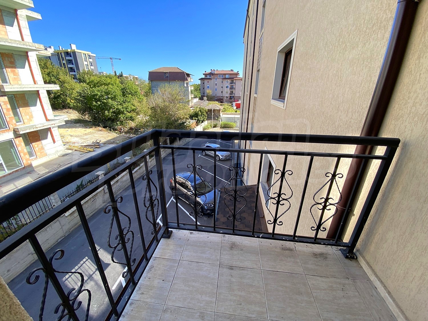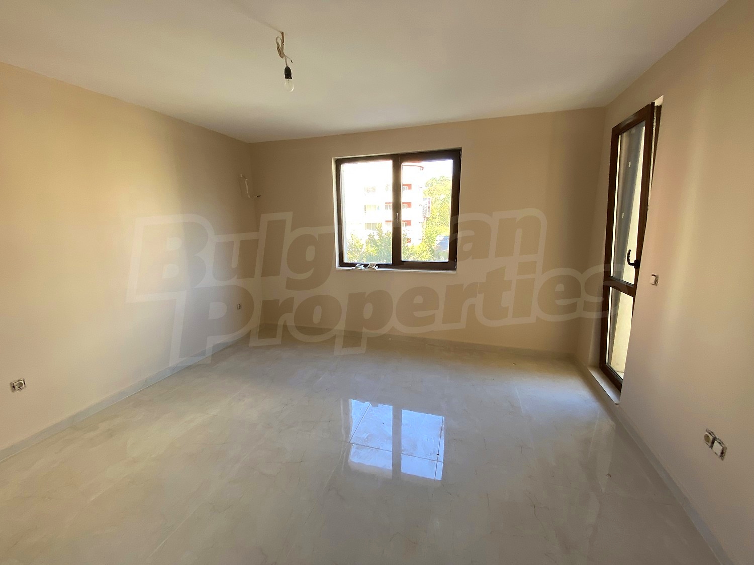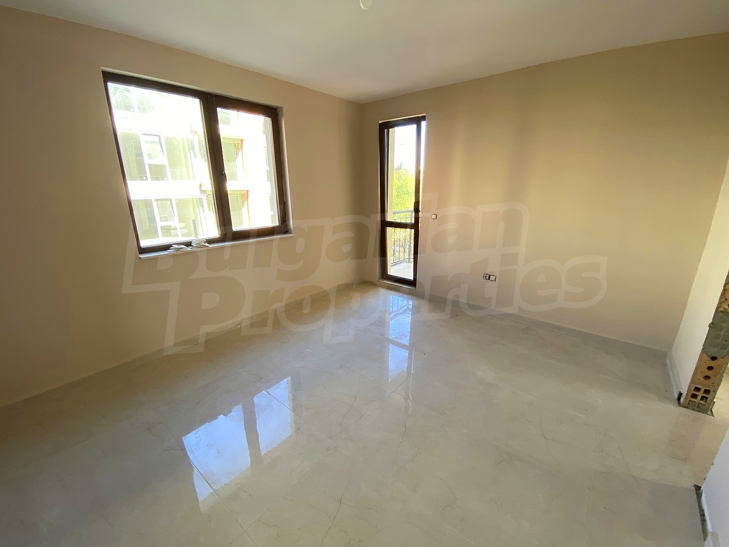 The apartment is finished turn-key but without interior doors. The flooring is Italian granite tiles. The bathroom has been tiled and some of the equipment has been installed. The walls in all rooms are painted. Option for complete finishing and furnishing.