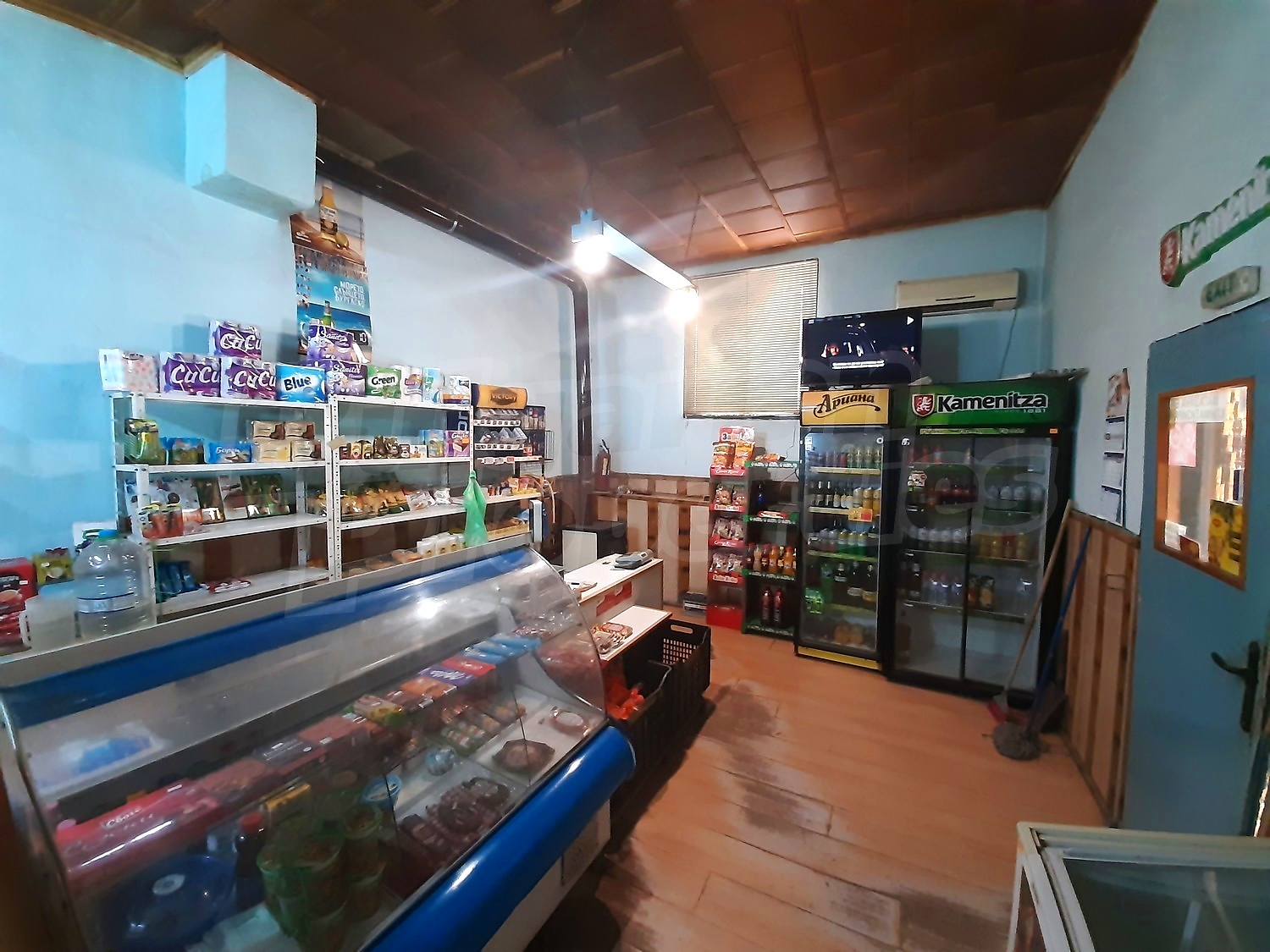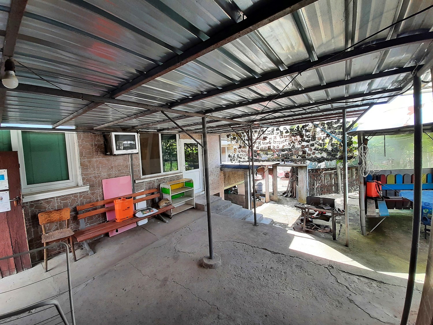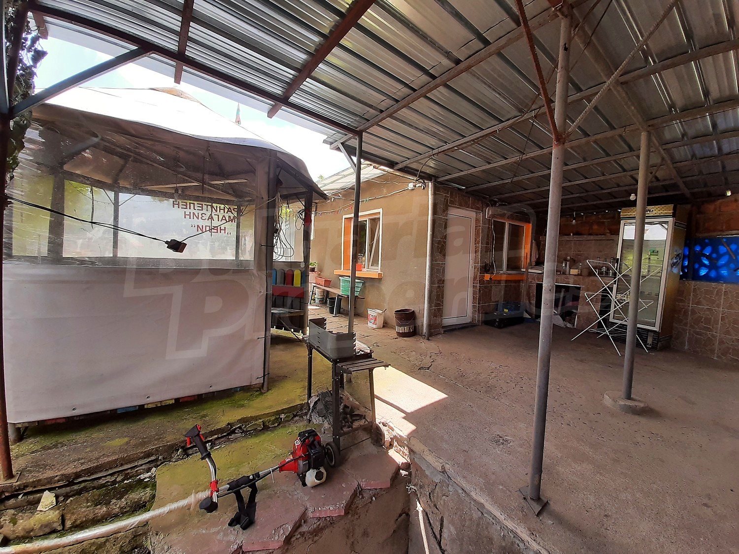 There is also a well-built outdoor bathroom and toilet. The garden is spacious, well maintained with an outbuilding, well with tank, vegetable and fruit garden. To the rear of the property there is an adjoining functioning shop. There is also a stove-fireplace with a water jacket heating the house in winter. The store has working showcases, freezers included in the sale price. In front of the shop there is a shed with wooden tables and benches.