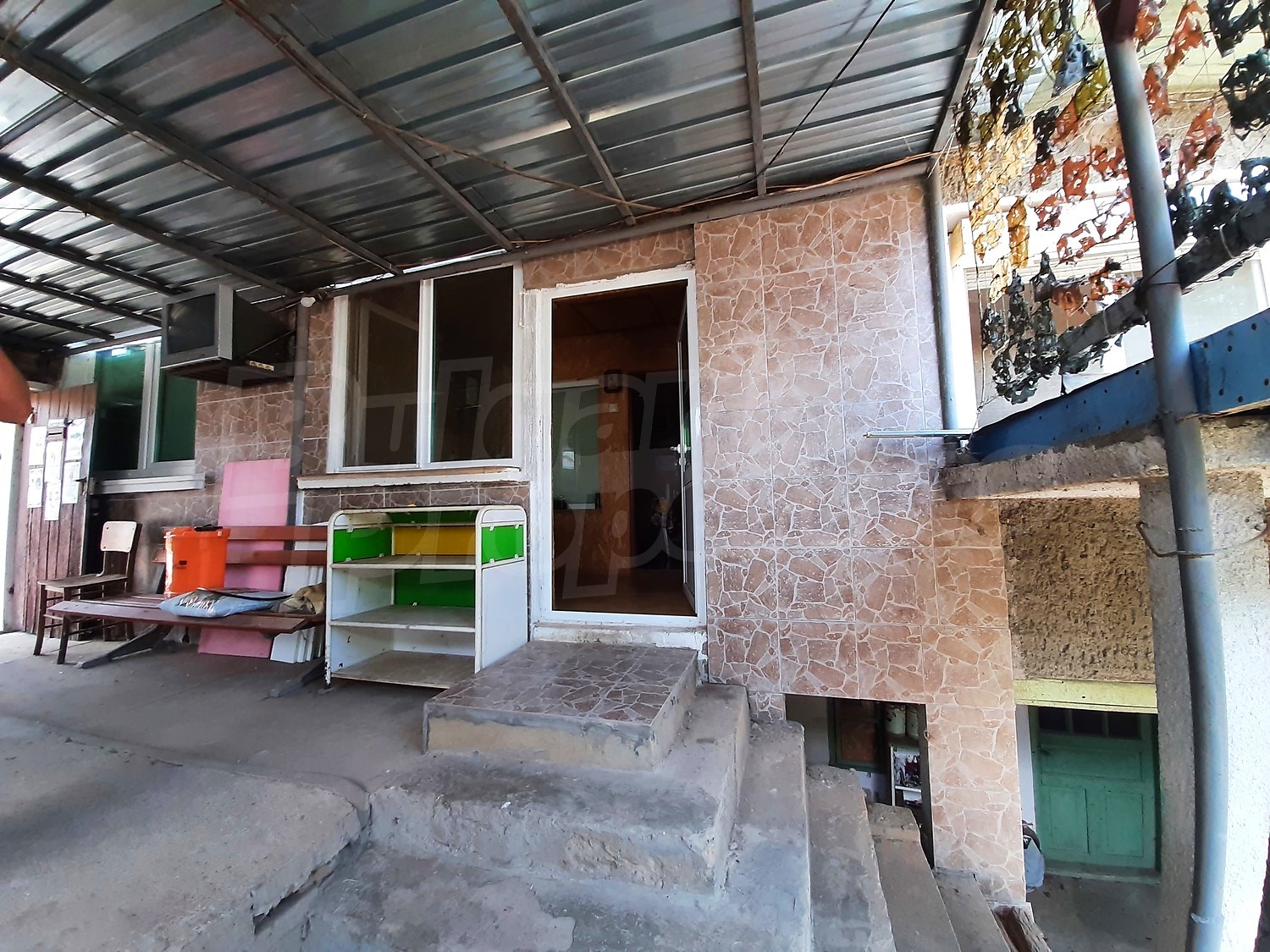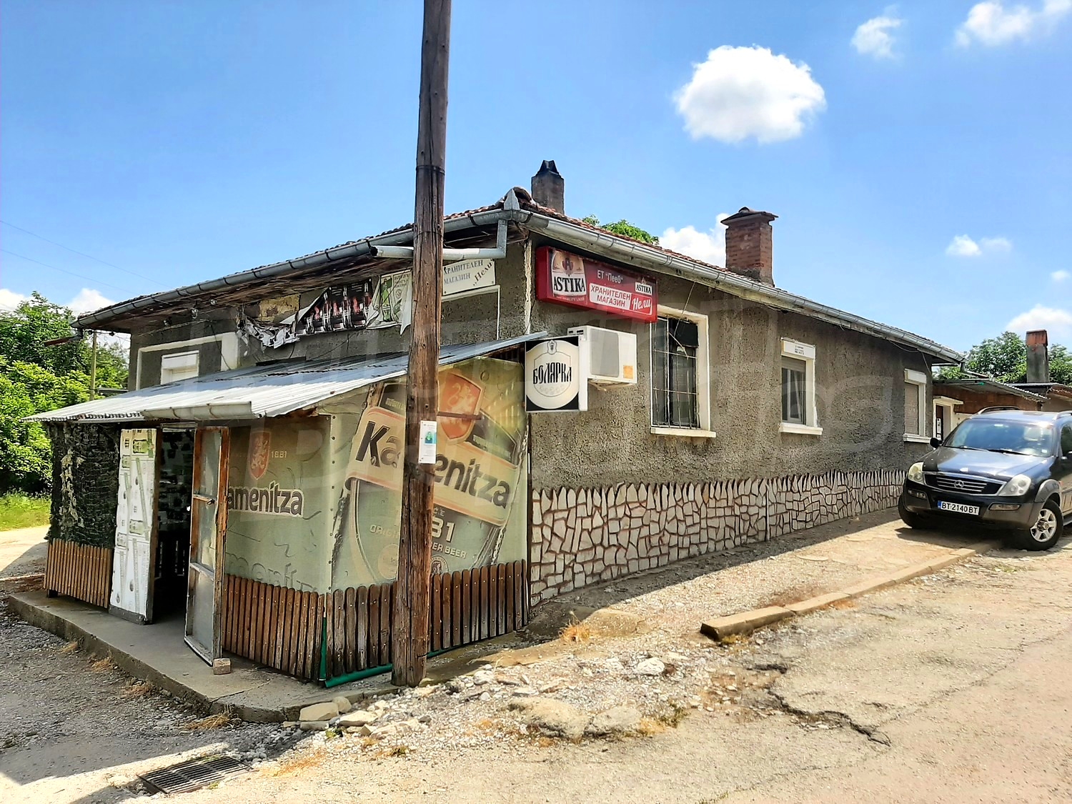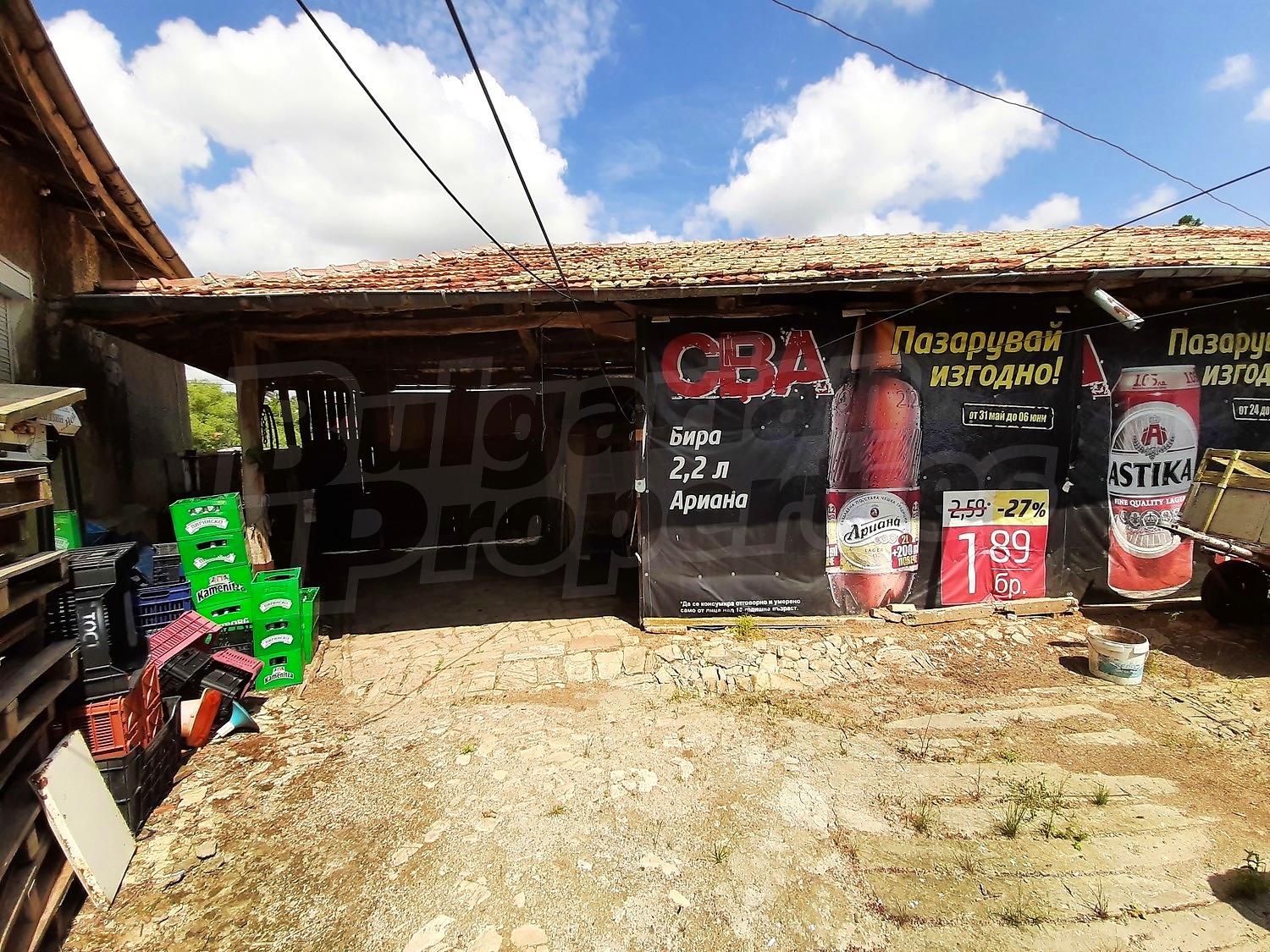 There is also a well-built outdoor bathroom and toilet. The garden is spacious, well maintained with an outbuilding, well with tank, vegetable and fruit garden. To the rear of the property there is an adjoining functioning shop. There is also a stove-fireplace with a water jacket heating the house in winter. The store has working showcases, freezers included in the sale price. In front of the shop there is a shed with wooden tables and benches.