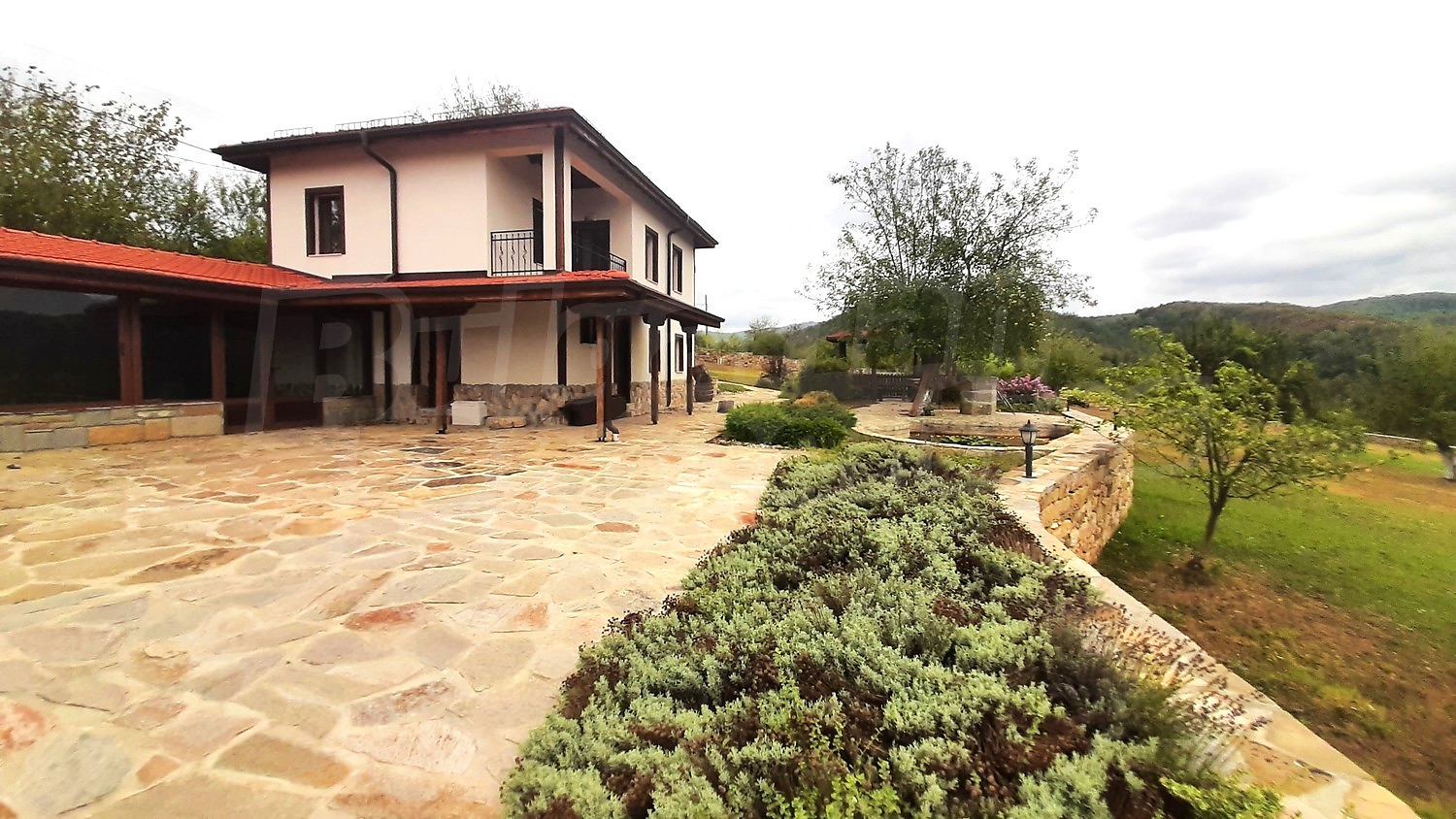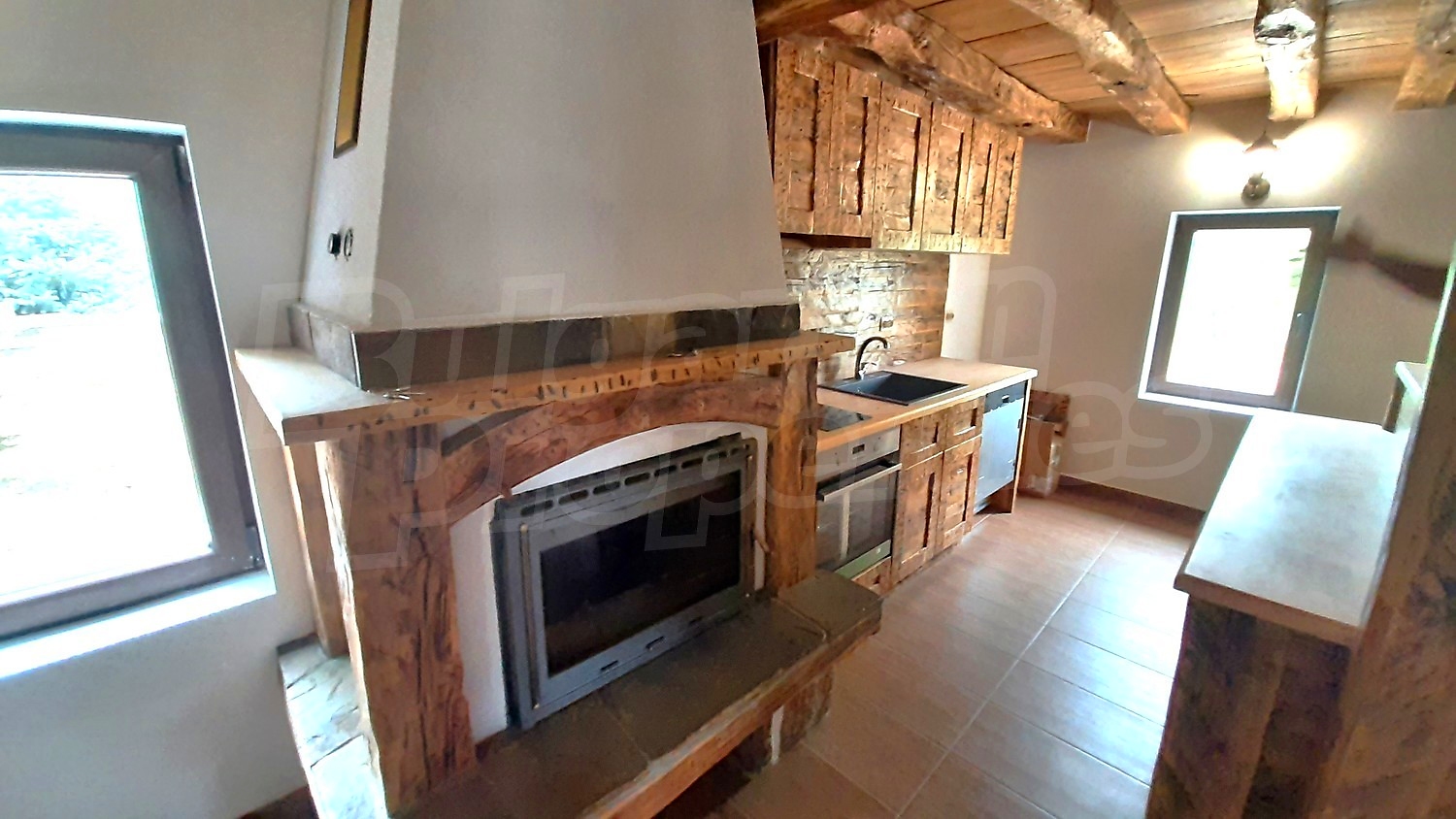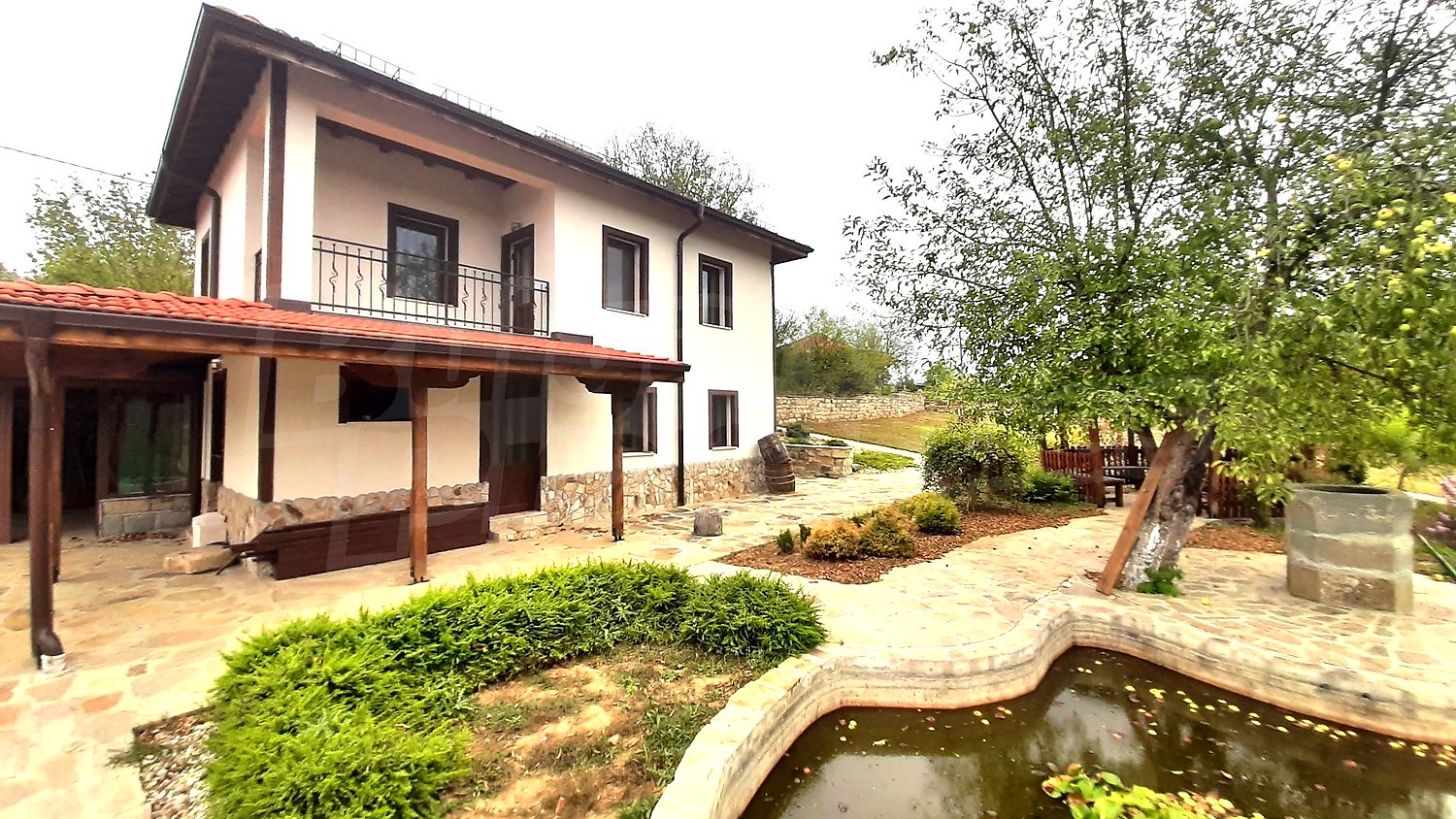 There is local heating - a fireplace with water jacket, as well as a solar installation for hot water. The house has external insulation, PVC windows, furnished with solid wood furniture. In the yard there is a well, central water supply, sewage treatment plant, solar panels, storage.