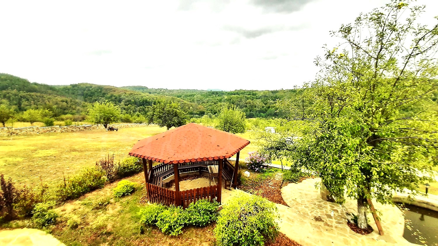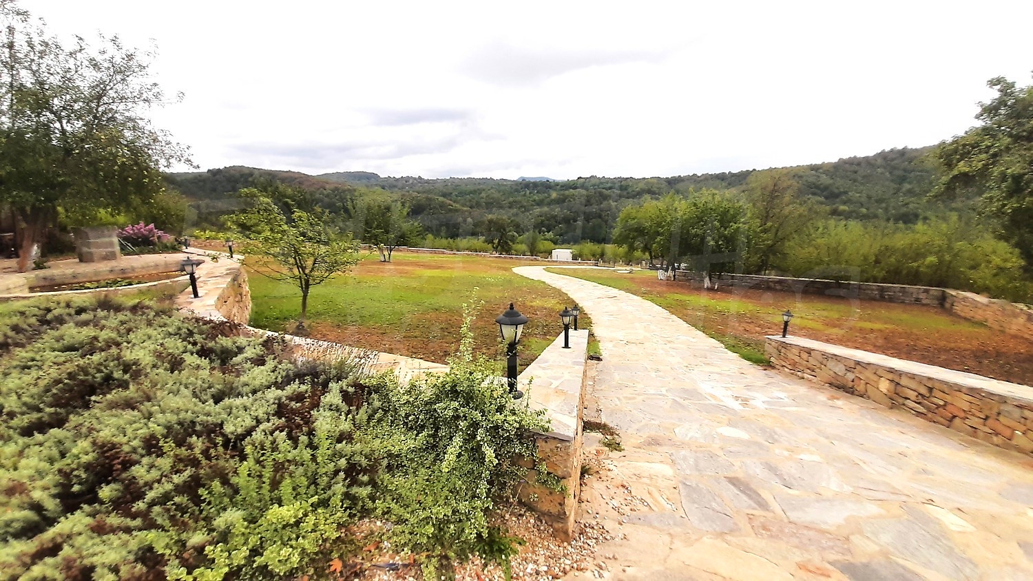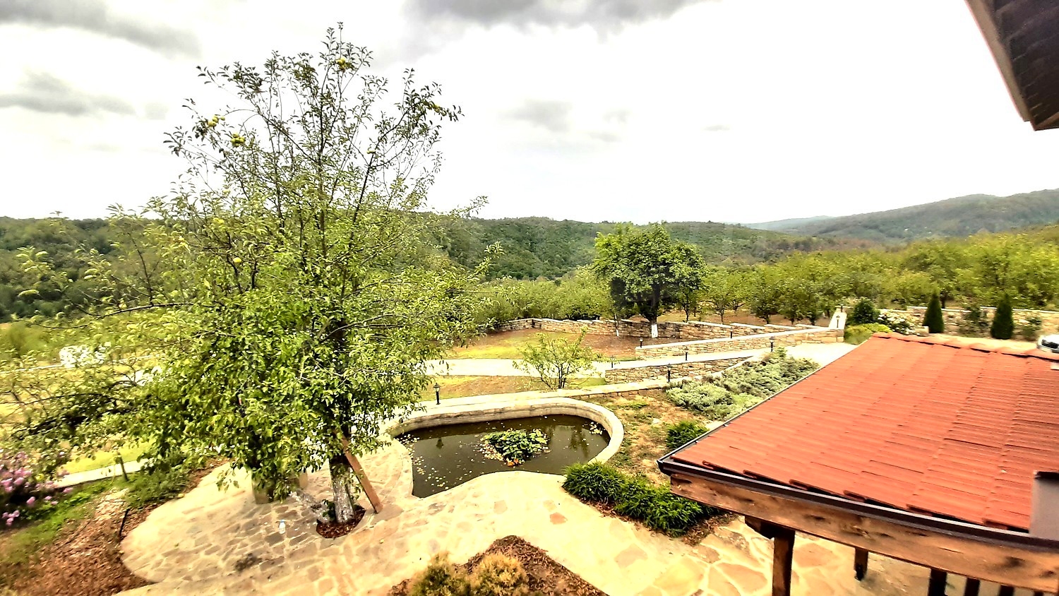 The garden, which is fully enclosed by a stone fence, is gently sloping, south-facing and offers beautiful mountain views. It is also excellently landscaped with separate seating areas, gazebo, small lake, barbecue area. There are playgrounds and paths with stone paving, garden lighting.