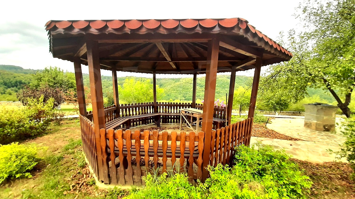 Next to the residential building there is a one-storey massive building, which is a covered barbecue with oven, fireplace and fountain lined with stone.