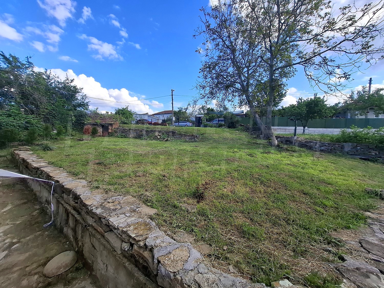 The courtyard is almost one acre (925 sq. m.) in size with a slight slope. There are two outbuildings, one of which is in quite good condition and could be used as an outdoor seating area, barbecue or winter garden.